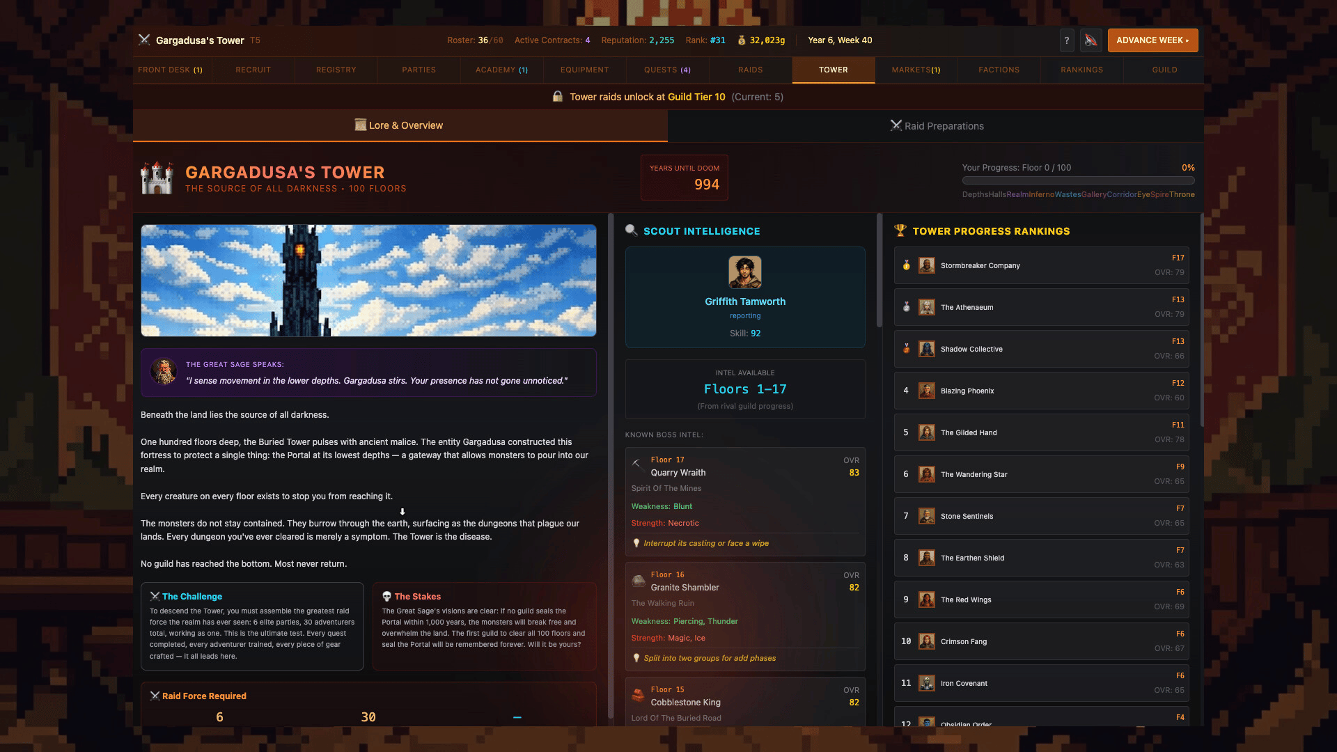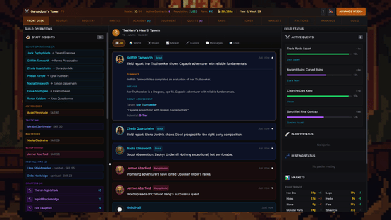 D&D meets Franchise Manager, Gargadusa’s Tower is a supremely deep guild management simulation that spans generations. Build your adventurer guild from nothing. Recruit heroes, complete quests, and descend the mysterious tower to confront the power that lies within.