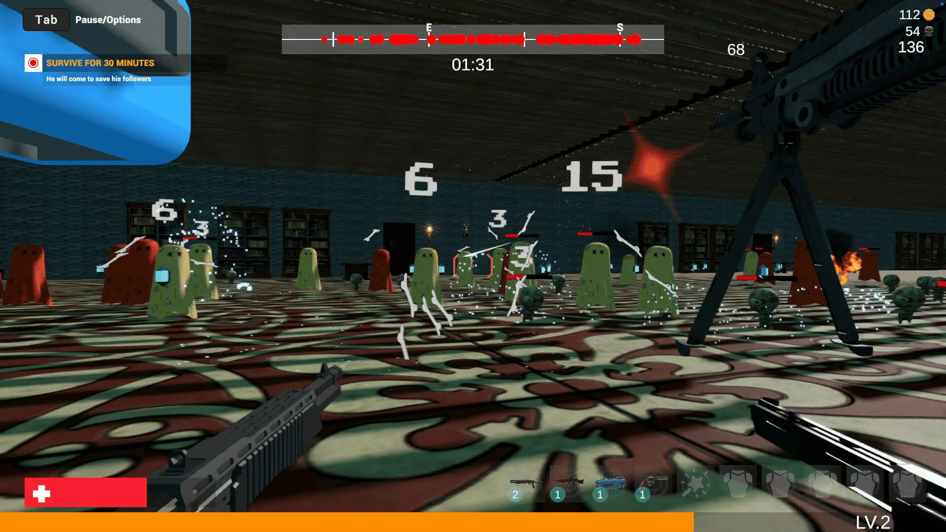 Unlimited Ammo Survivor is a survivor game but in FPS mode.Unlock the machine gun, upgrade it to level 5, and the path to redemption lies within. Too many monsters? Break the jars, and you will find glory.