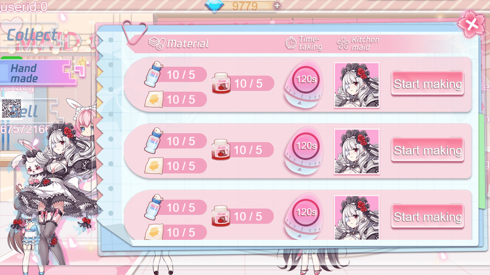 You will get 500 diamonds to start the shop.Maids of different styles are taught by the store manager.Each maid has her own props and interactive dubbing for more than 10 seconds