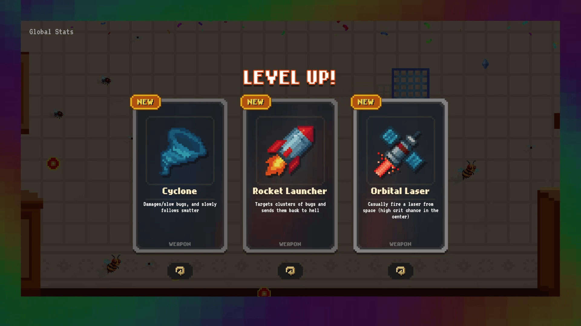 Squash waves of nasty bugs! Swat them, kill them with fire, or pull out the Orbital Death Laser. Your mouse is your weapon in this EPIC Bullet Heaven Roguelike loaded with crazy weapons, items and upgrades! Now go spank some bugs