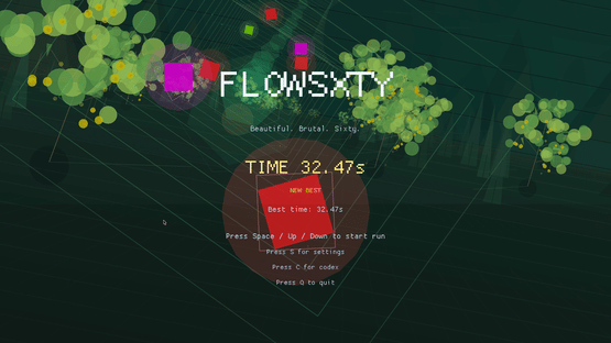 FLOWSXTY is a brutal, beautiful 3D trench runner where you dodge in four lanes and fight to survive to 60 seconds to clear a mode.