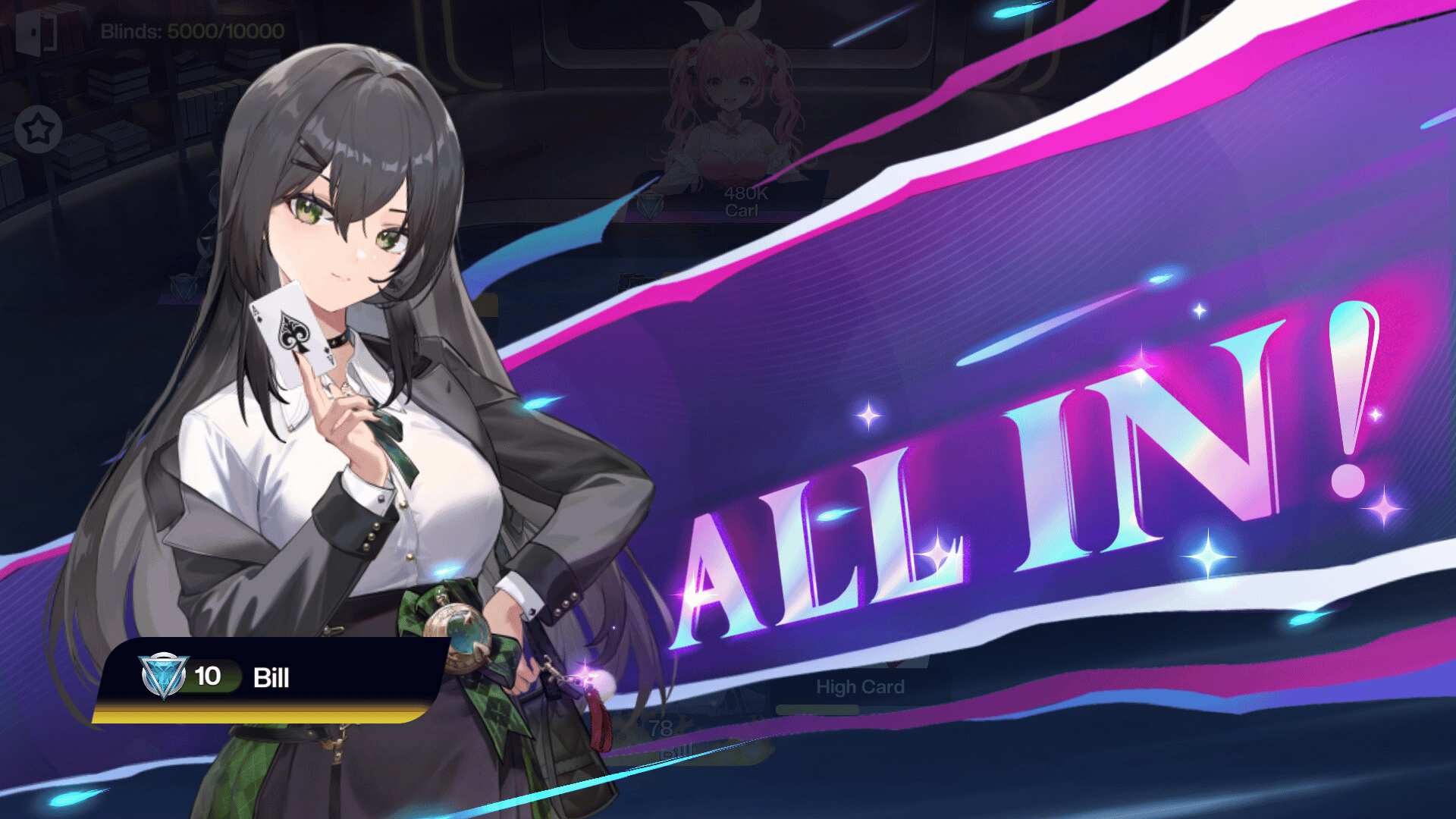 Poker Fate is an anime-style Texas Hold'em game featuring beautiful heroines. It combines easy-to-learn tutorials for beginners, high-stakes duels for top players, and a variety of thrilling tournaments. Join now and uncover the cards of your destiny with us!