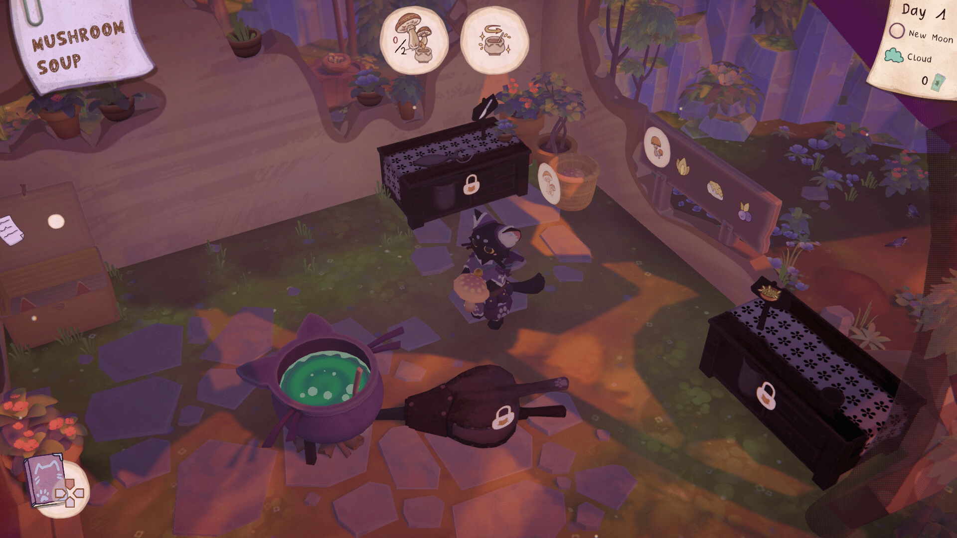 Forage & Brew is a game where you play as a Cat witch in her potion workshop. Explore the forest, gather ingredients and brew magical potions in order to help the many clients that will come for your aid. How will you decide to live it out each passing day?