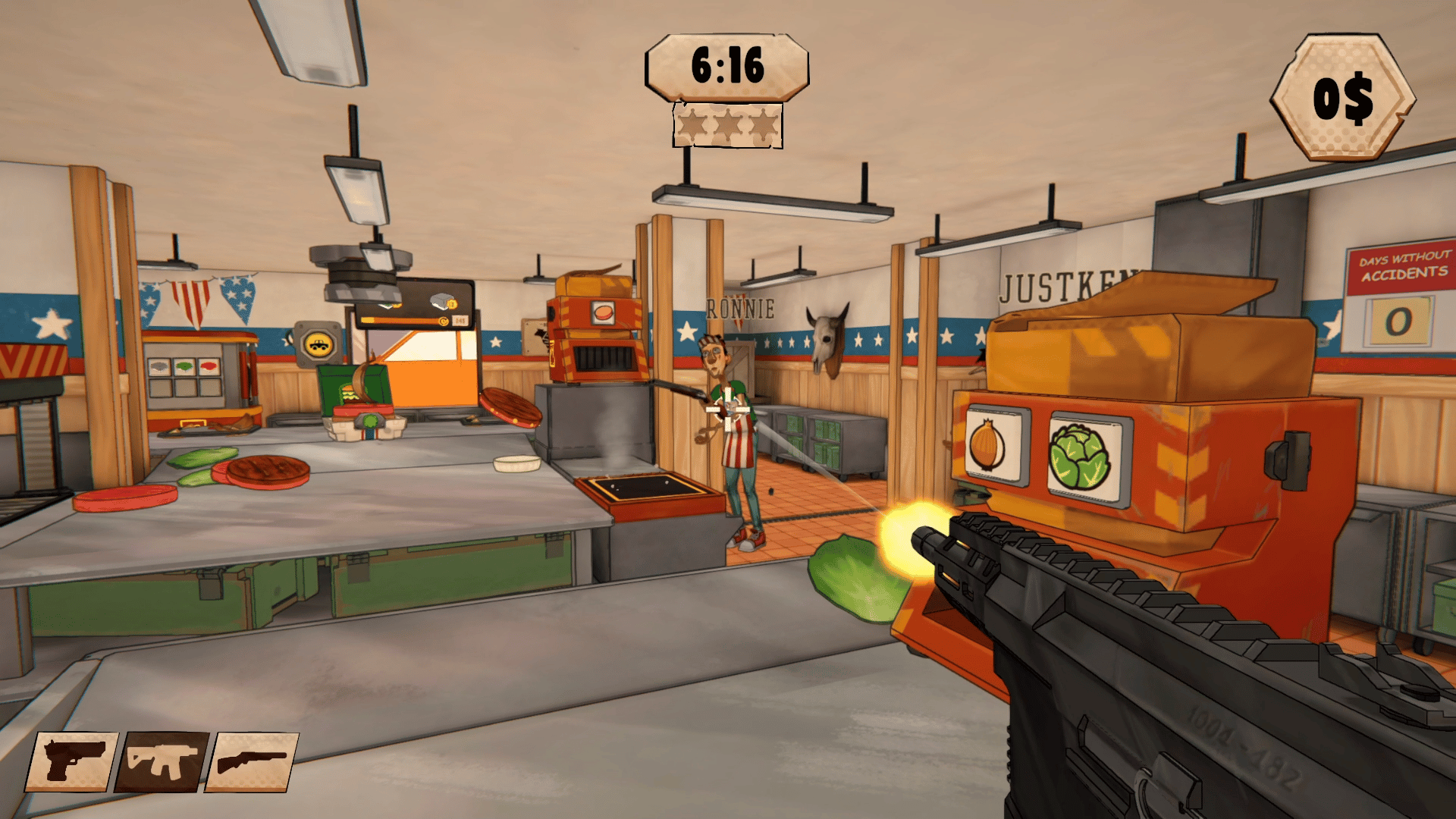 Team up in chaotic co-op shifts at Joe’s Freedom Burgers! Cook with guns, serve hungry customers, and travel across a totally normal, definitely accurate version of America in the most patriotic cooking sim of all time.