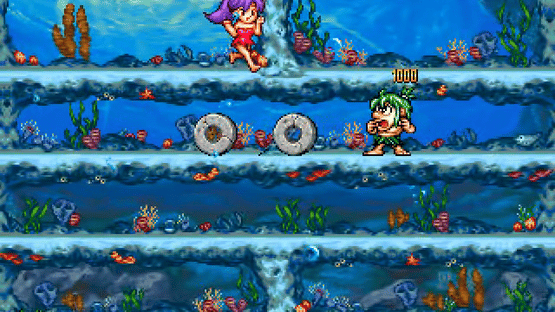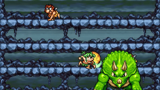 For this sequel to the sideways scrolling 1991 beat-em-up, "Caveman Ninja", Data East chose to eschew the former's gameplay and create a single-screen platformer with gameplay hugely similar to Toaplan's, "Snow Bros.", released in 1990.