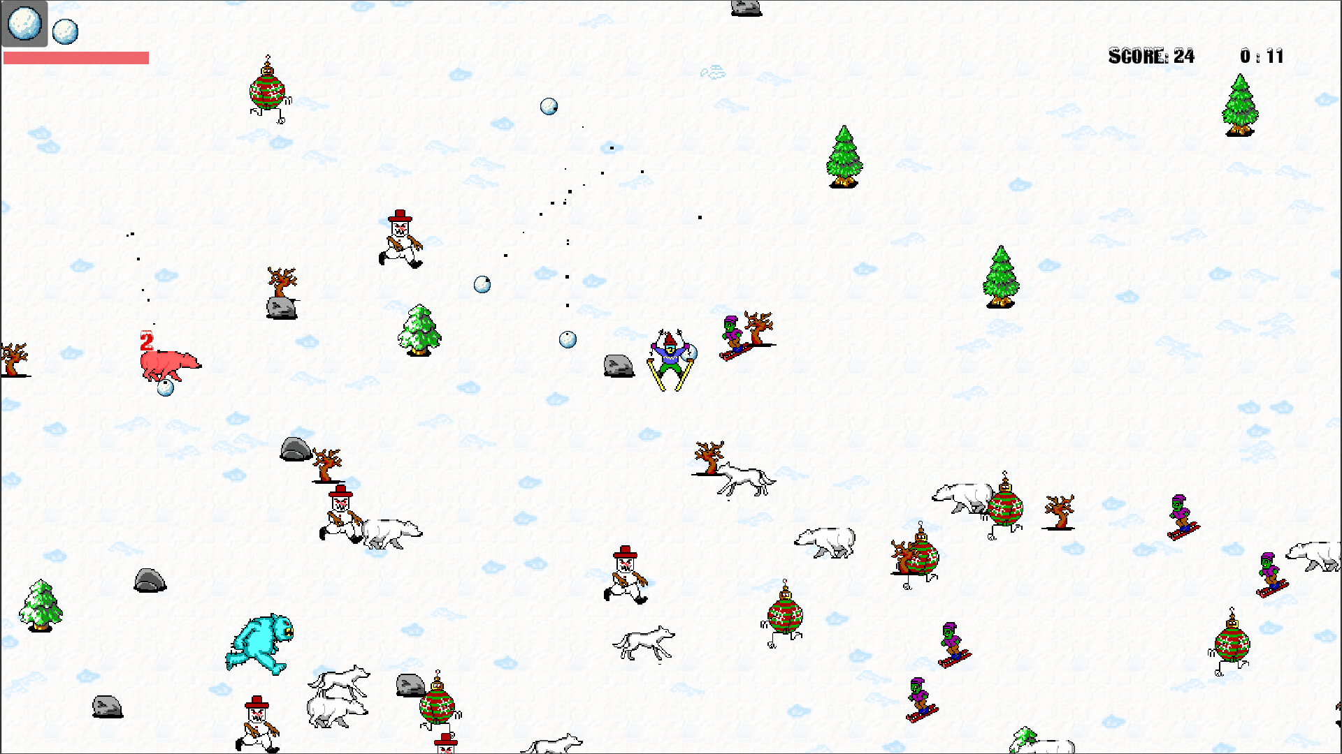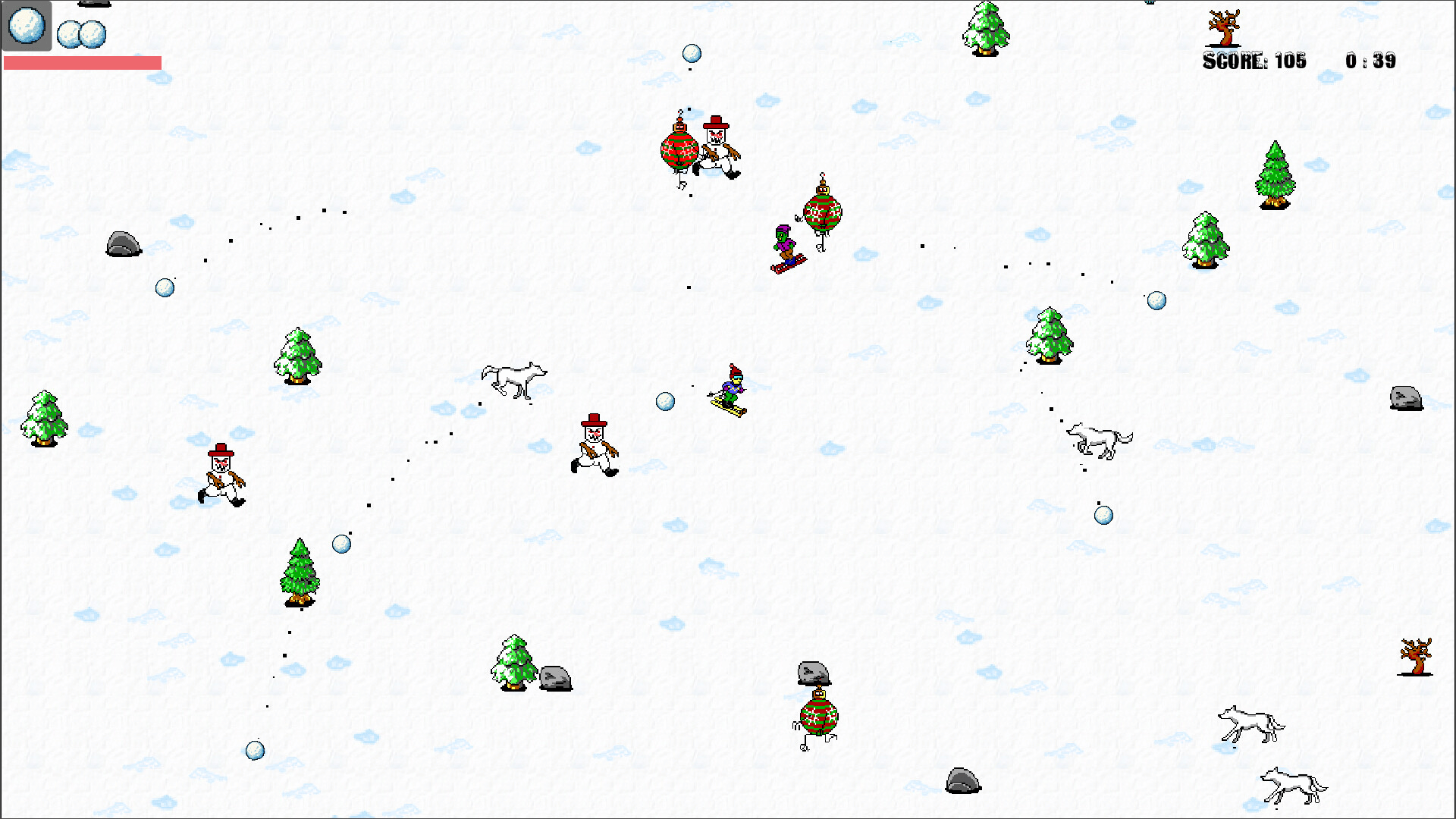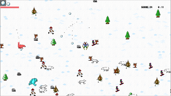 SkiFree meets Survivors! Shred down a procedural mountain, blasting monsters to hard-rock Christmas tunes. Dodge trees, jump enemies, and yes—you can run over squirrels. Fast-paced winter chaos for any season!
