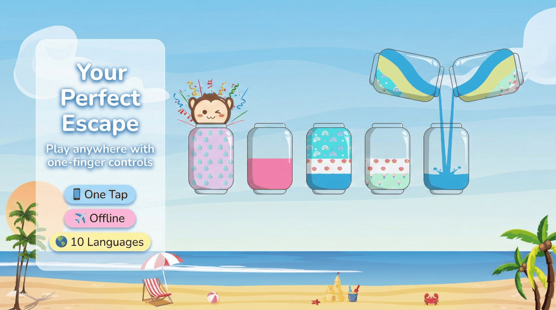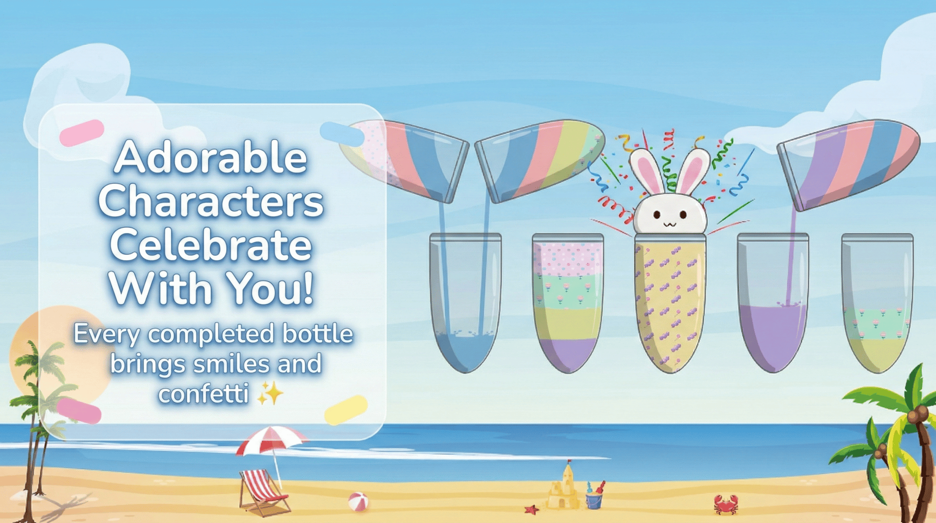 Love water sort puzzle games? Liquid Sort Puzzle is the ultimate color sorting challenge! Pour colorful liquids between bottles to match colors in this relaxing brain puzzle. A satisfying and addictive brain game for adults — the perfect mind game and sorting puzzle for all puzzle fans!