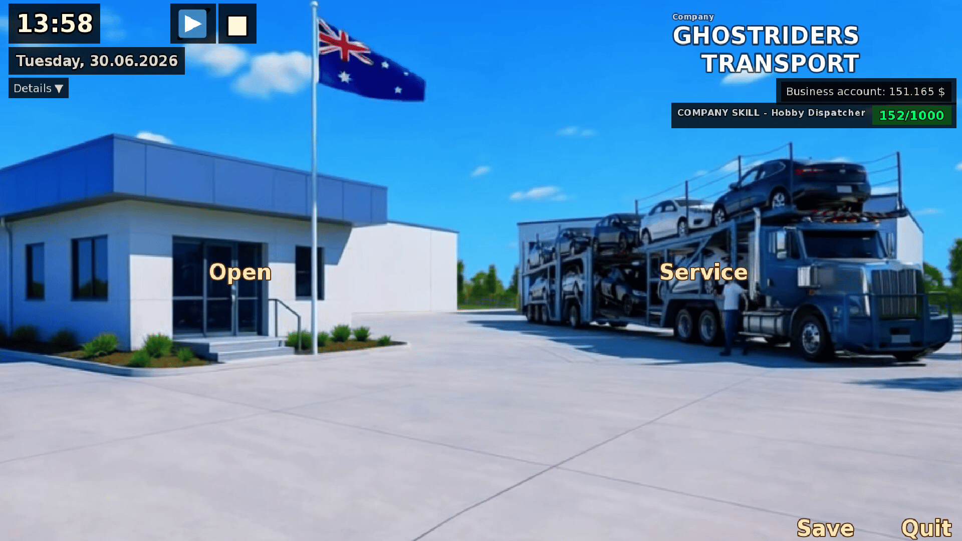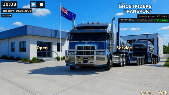 Build a car-transport company across Australia. Take freight jobs, plan tours, manage trucks, drivers and running costs, track profit and loss, and expand your fleet step by step with a clean desktop UI. Play offline.