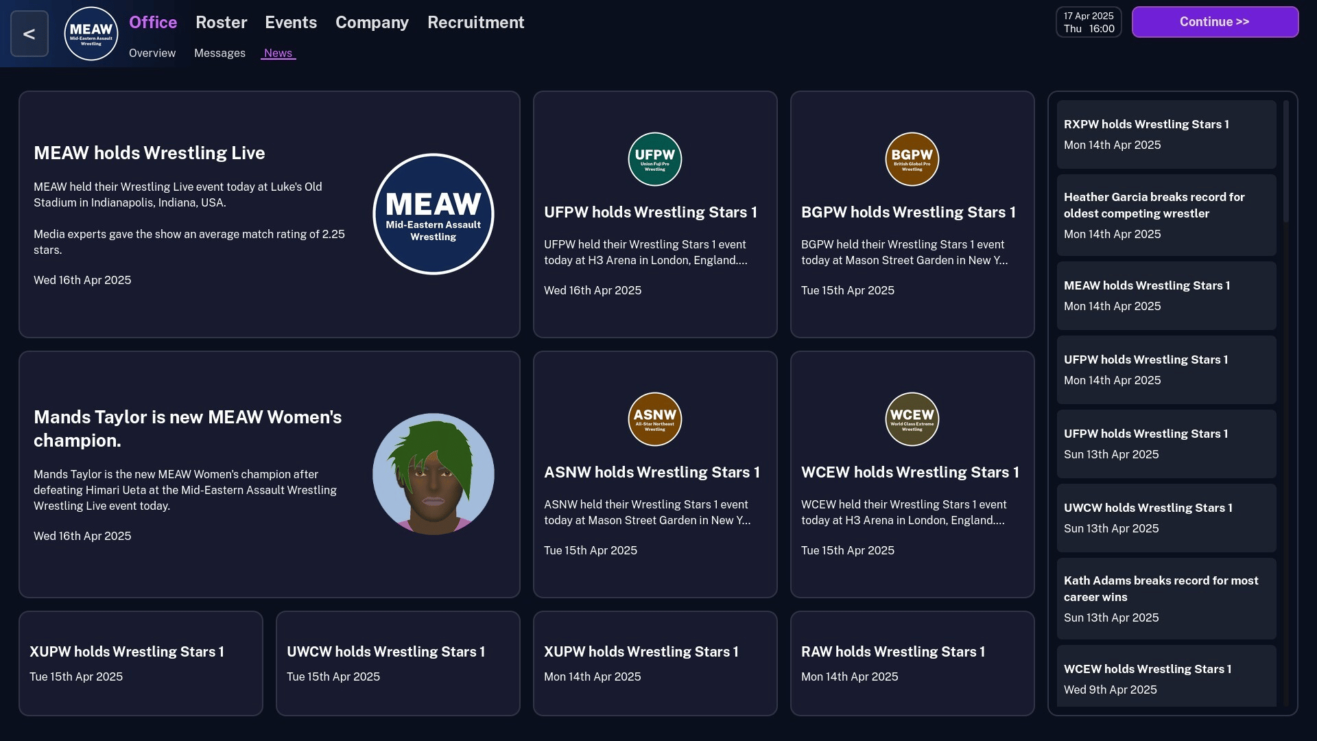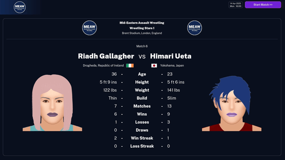 Shoot Pro Wrestling 2 puts you in control of your own wrestling federation, in this manager-style wrestling simulation game. You don't just pick winners though, you actually let your wrestlers battle it out in simulated "shoot" matches where every move matters. Can you give the fans what they want?