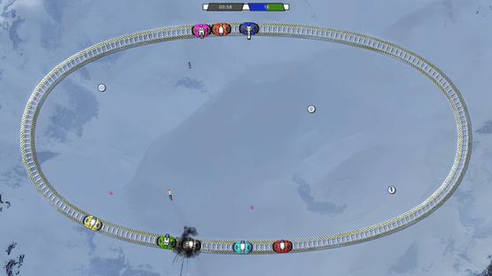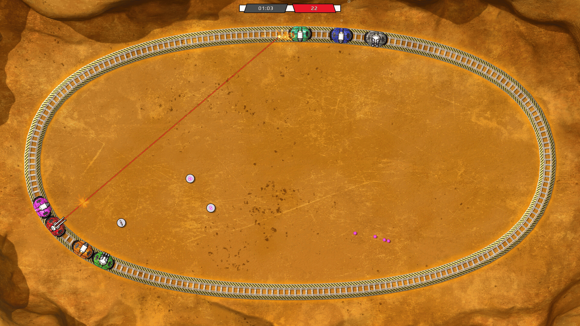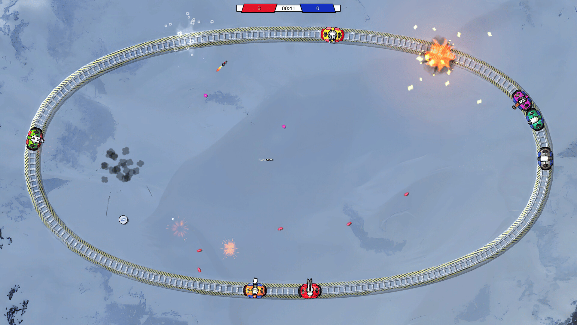 A fast-paced one-screen arcade shooter built for chaotic couch party matches and score-driven survival runs. Ride the rail, bump and total opponents solo or in teams with friends, or push your limits against ever-stronger AI in endless, leaderboard-focused challenges.