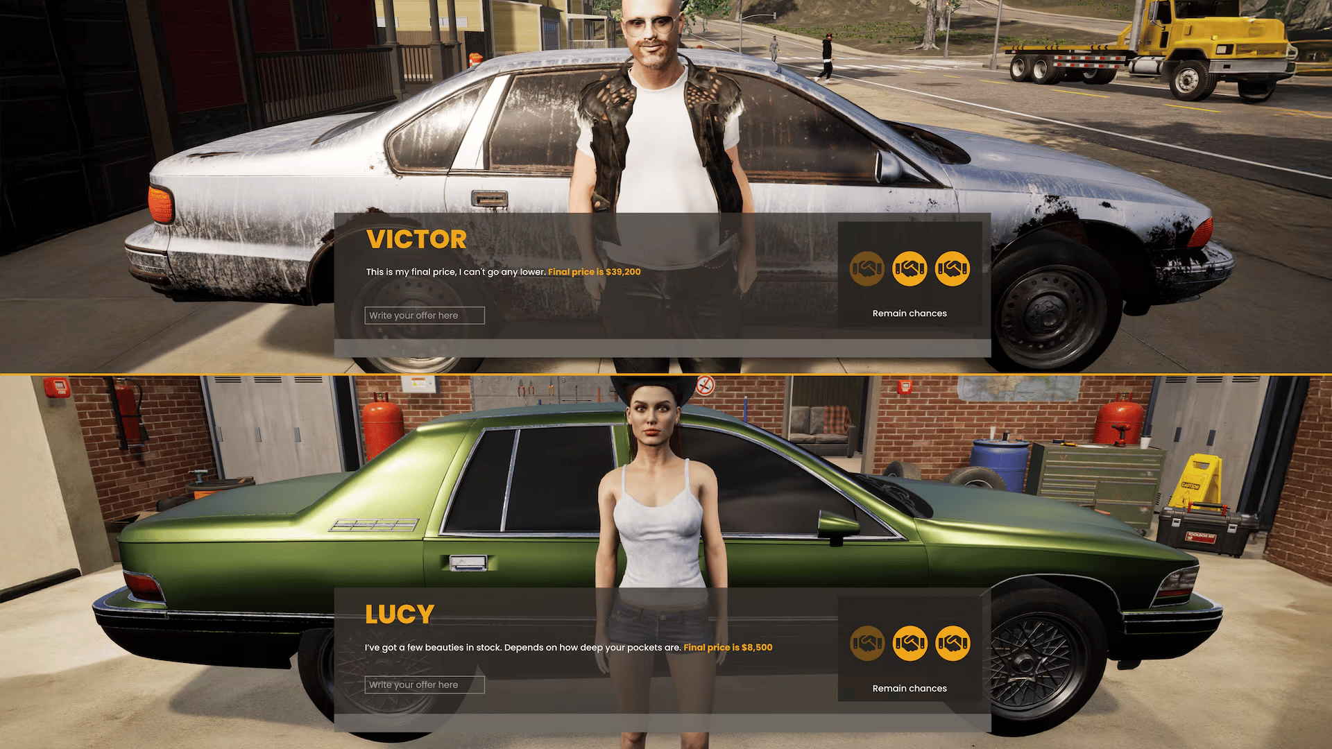 Step into the fast-paced world of car sales and repairs in Car Dealer Garage Simulator 2026! Manage your own dealership and garage, buying, repairing, and selling vehicles to customers. Inspect used cars, fix mechanical problems, and customize rides to boost their value and attract buyers. Handle customer requests, negotiate prices, and build your reputation in a competitive market. Upgrade your garage with advanced tools and hire skilled mechanics to speed up repairs. Expand your business by acquiring rare and luxury cars to offer the best selection. With realistic vehicle physics and detailed environments, experience the thrill of running a successful car dealership and garage. Are you ready to become the top dealer in town?