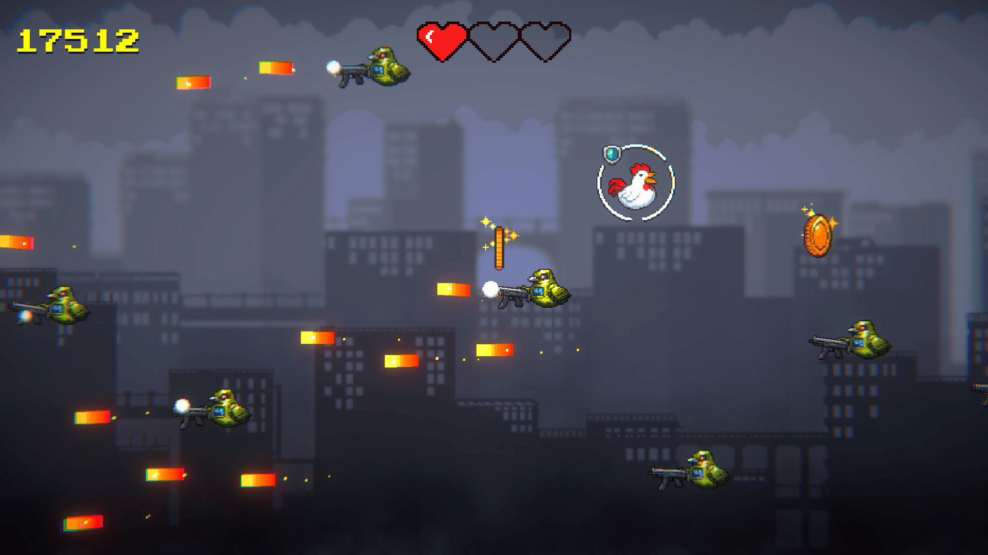 A fast-paced arcade action game where you play as a chubby rooster escaping a dangerous construction-zone turf, dodging bullets, and urban chaos in an endless, bullet-hell inspired run.