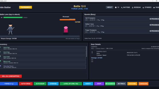 Idle Battler is a progression-driven idle RPG focused on forging powerful weapons, battling increasingly difficult enemies, and advancing through a rebirth-based scaling system. Each rebirth reshapes the in-game economy and raises the challenge, rewarding players who optimize their strategy and push further with every reset. The game features rarity-based loot, strategic progression choices, and evolving balance updates designed to support long-term growth and meaningful advancement over time. Currently in Beta, the core experience is fully playable and continues to receive balance improvements and new features as development progresses.