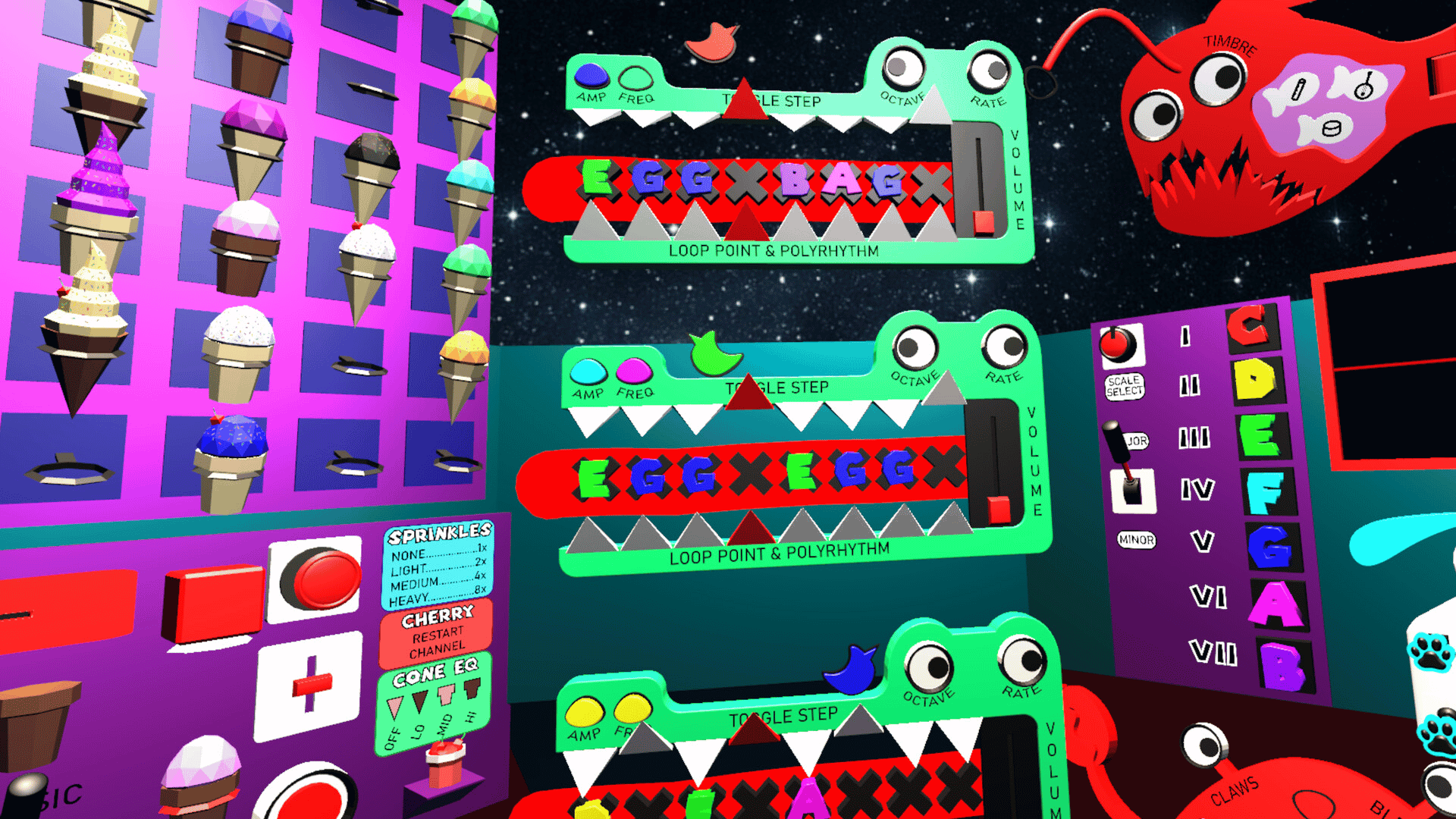 TonoTone is a built-for-VR cockpit style modular synthesizer. Using in-game waveform generation, learn to create dynamic melodies, polyrhythms, and complex compositions.