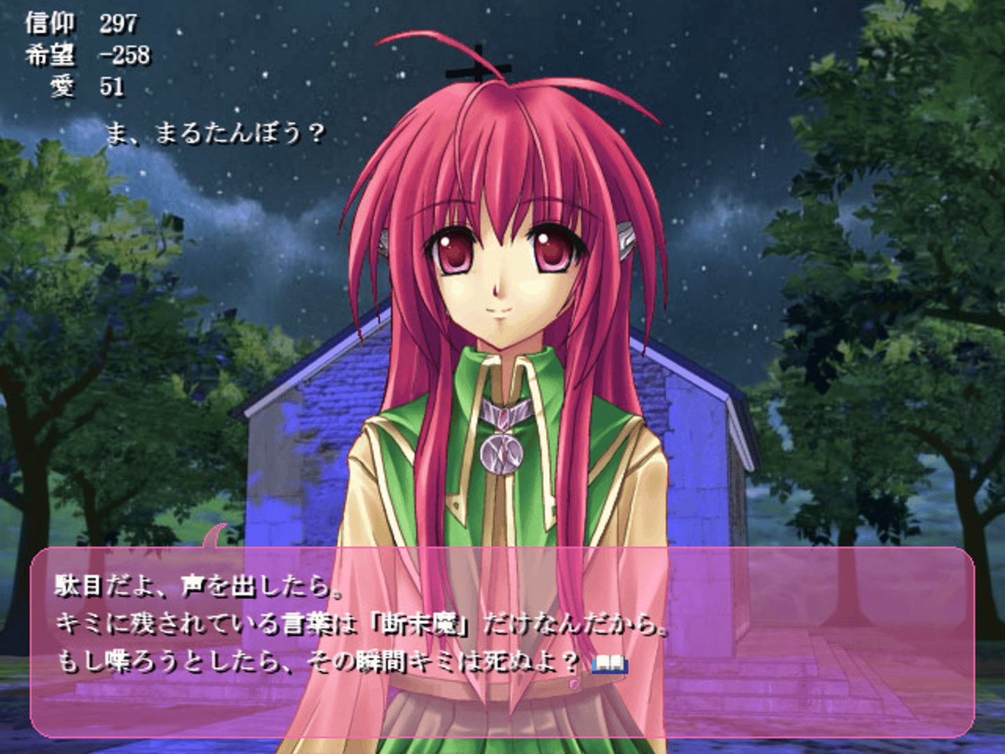 Sublation. The moment when the old is negated, giving rise to the new. Red, yet not red. Blue, yet not blue. A love simulation that paints the clash of red and blue, exploring the theme of dialectics in romance. A pair of lovers living in reality, and two goddesses wandering through dreams. These two worlds, never meant to intersect, will intertwine through your intervention. Red and blue. Knowledge and folly. Mars and Earth. Passion and calm. Dreams and reality. Truth and illusion. Thesis and antithesis clash, simulating the process of their sublation. With dialectics as the core theme, this game is inspired by the In Praise of Folly and Chaos theory.
