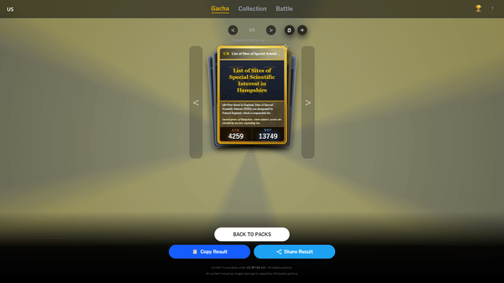 Open packs to get 5 random Wikipedia articles as cards. Higher quality articles become higher rarity cards. You can also do daily tasks and battles.