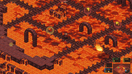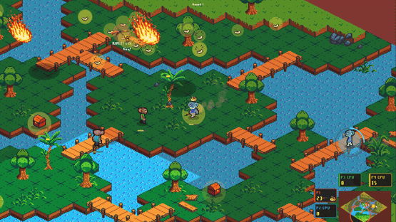 Panic of the Apes is a chaotic 1 to 4 player couch PvP game where apes battle to stockpile before a volcano erupts. Grab bananas, pelt rivals to steal theirs, eat for speed boosts, loot chests, and dodge roll to deflect shots. Most bananas at zero wins. First ape to three rounds is King Chimp!