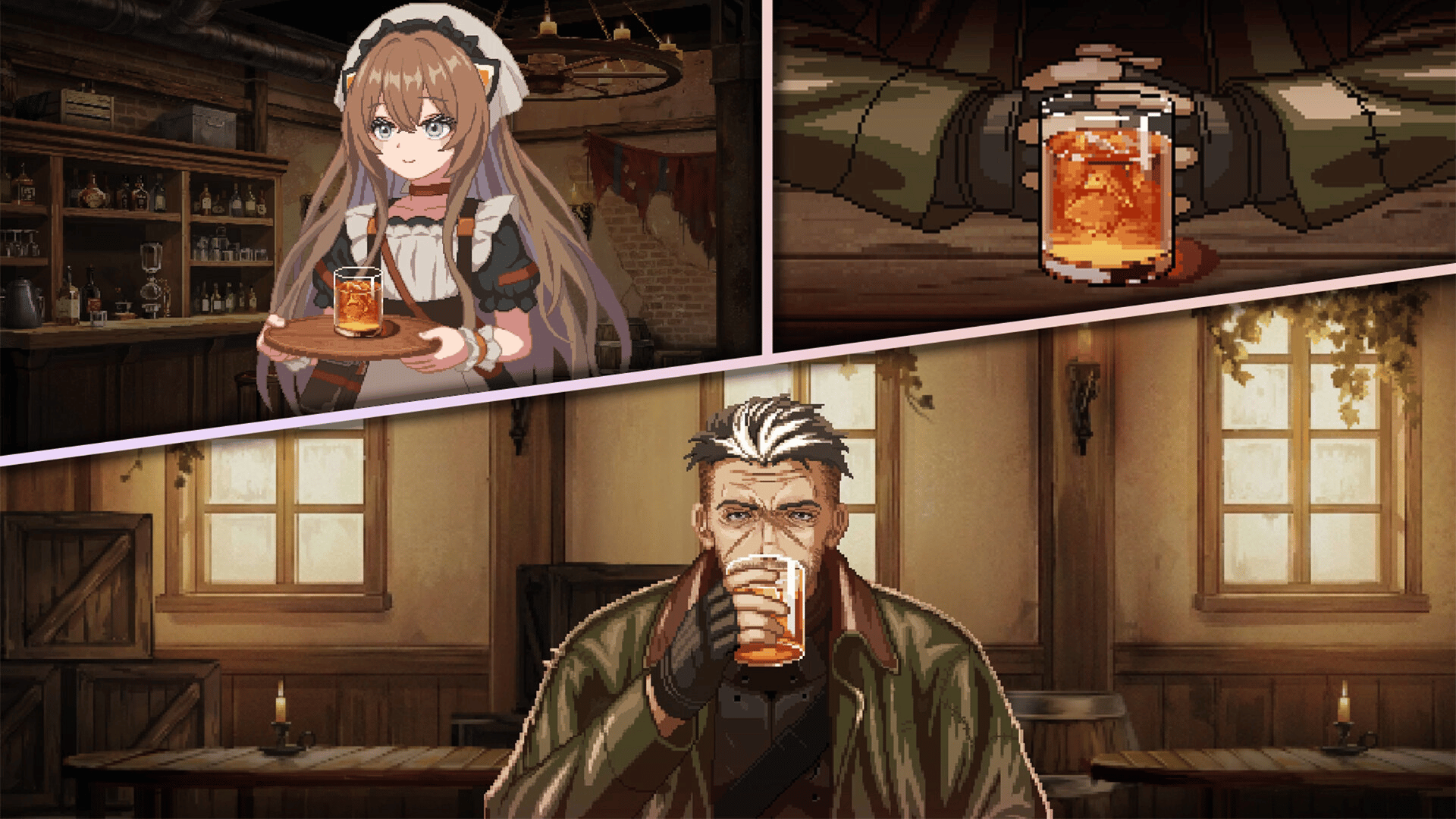 In a blasted world teeming with undead, a barkeep and a young girl run the Time's End Tavern, a lone oasis amidst this barren wasteland. In a desolate landscape ravaged by Zombies and Raiders, that one drink they love, and a few kind words, help everyone remember why it's all worth it.