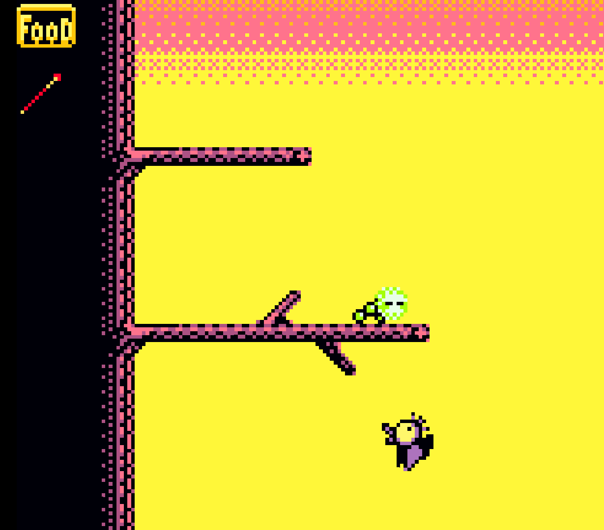 The main goal of Grackle is to control a little lazy caterpillar named Dozy, who is a bit of a late bloomer. Hatching later than the rest of his buds, he's got to hustle across a few trees, eating leaves and avoiding danger. The main threats of Grackle include starvation, thorns, frogs, spiders, and of course, grackles.