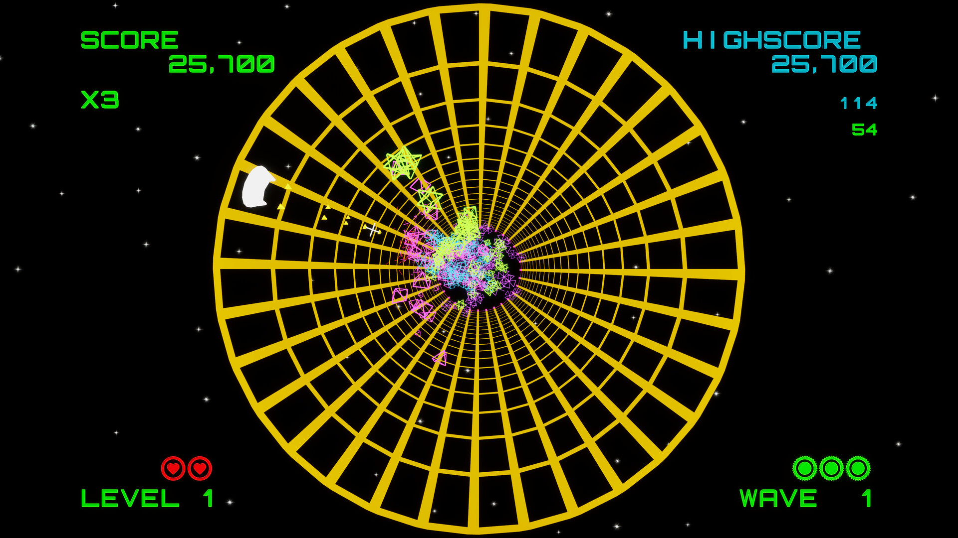Geometry Attack is a neon-drenched retro arcade shooter inspired by classics like Geometry Wars. Blast through waves of shapes in VR, on your Steam Deck, or in 2D. Easy to pick up, hard to put down, and perfectly tuned for seated recliner play. Chase the high score from another dimension!