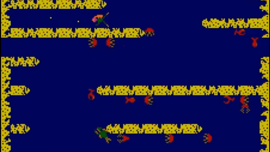 Compete against each other and a time limit (your air supply) to retrieve a treasure on the sea floor. Tago Electronics, the Calipso maker, released 3 different machines in our database under this trade name, starting in 1981. Other machines made by Tago Electronics during the time period Calipso was produced include Anteater, and Video Hustler (Tago).