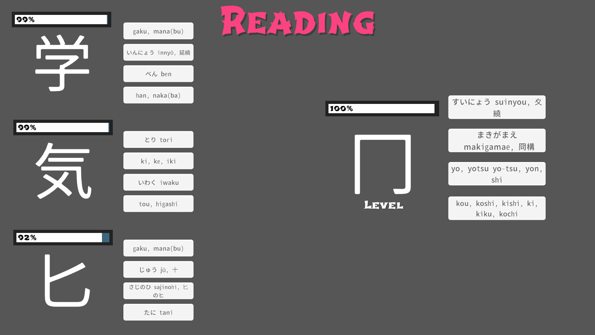 Learn Japanese kanji in a fun and engaging way. Catch, train, and battle kanji as you journey through Japan in search of Sakura's missing father. Merge kanji to form new ones and gain an edge in battle. Perfect for anyone looking to learn Japanese or prepare for the JLPT.