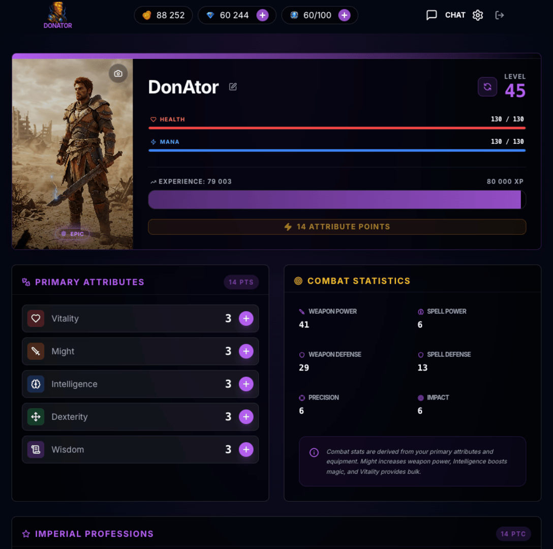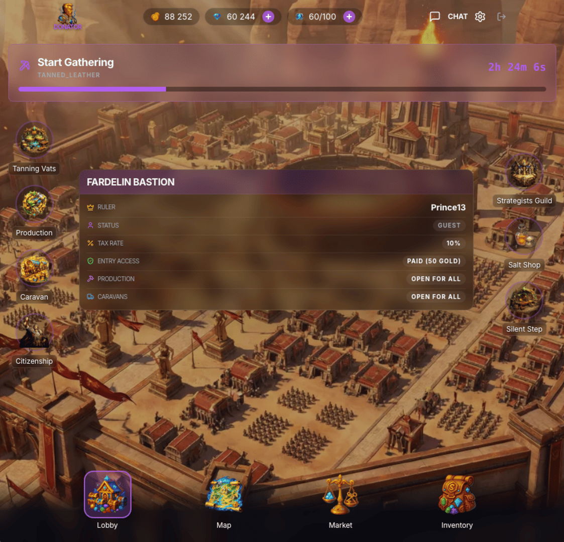 A hardcore sandbox MMORPG with an economy entirely controlled by players. No NPC merchants: every sword is forged by a real person, and the 18 Great Cities are ruled by real players. Build monopolies, raid caravans, and make your mark on the Empire’s history.