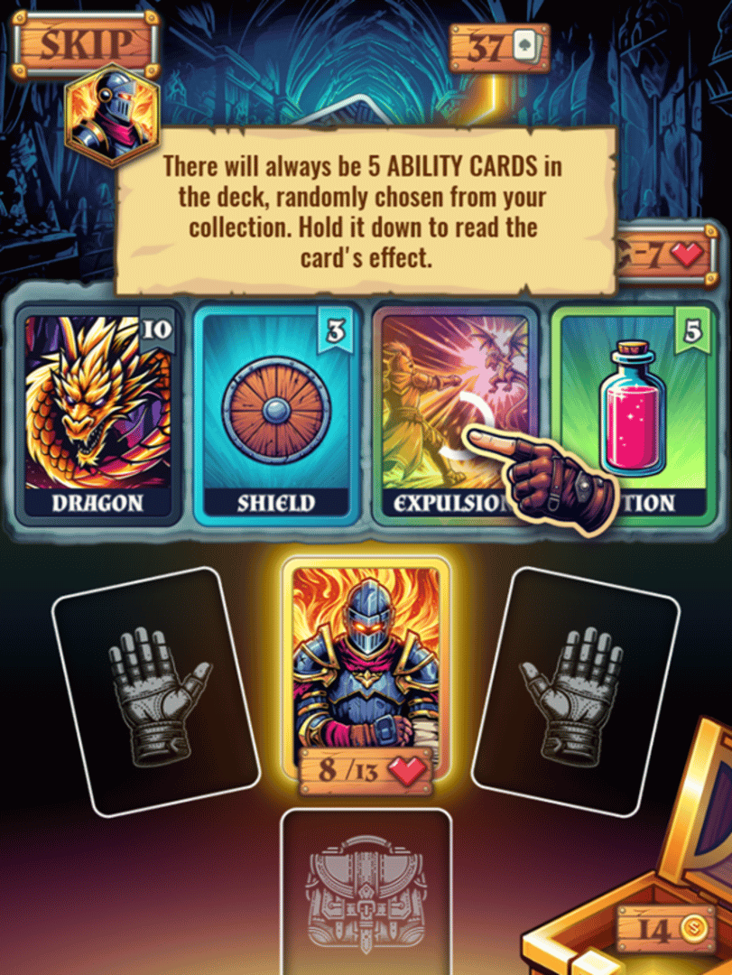 A rogue-like deck building game where you traverse a dungeon defeating various monsters. Play as a knight wielding powerful fire spells to conquer dungeons. Strategically clear all cards to escape each level, collecting gold and using your deck to overcome challenges and adversaries.