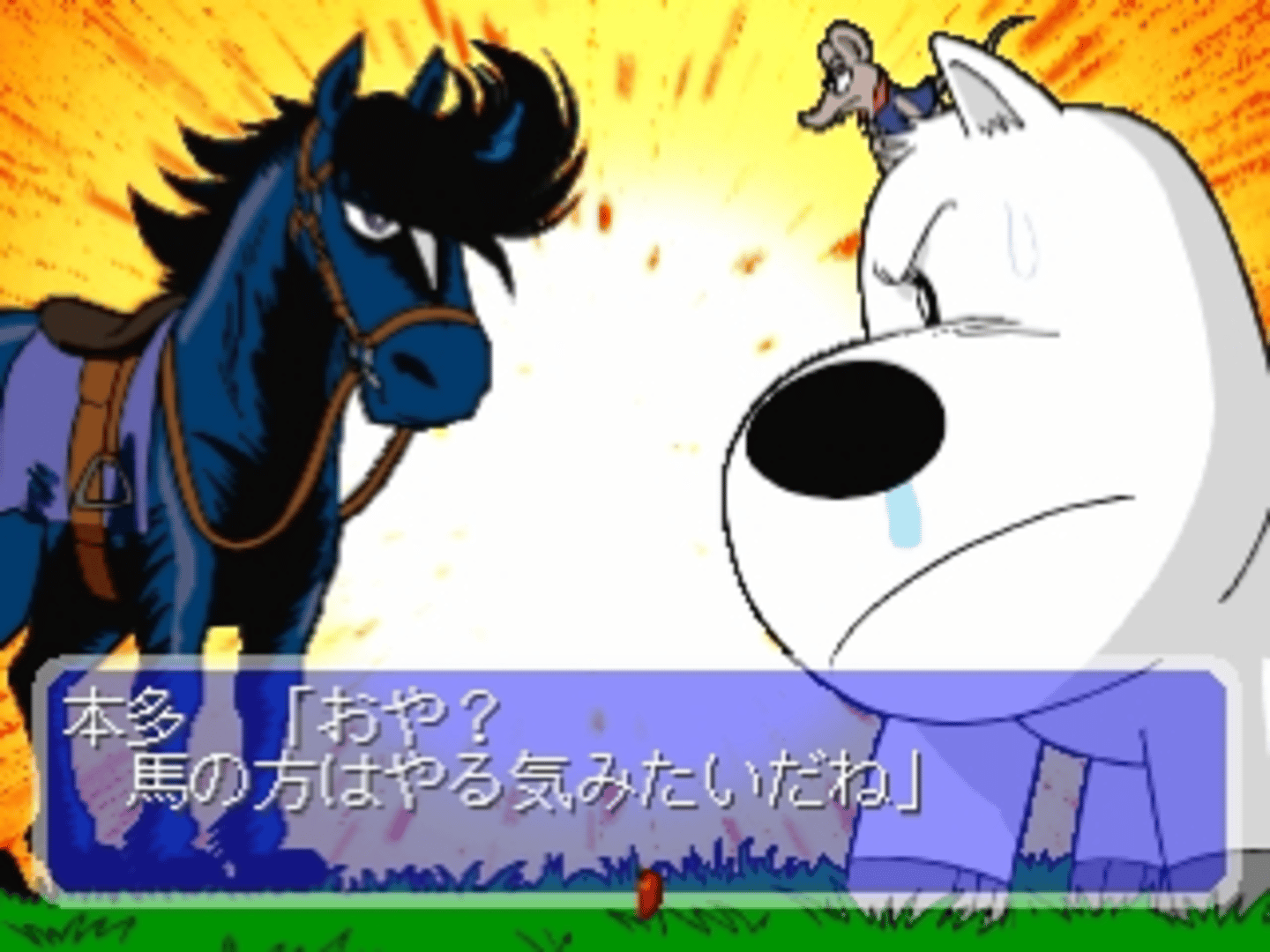 Midori no Makibao is an anime based Playstation game who is a mix between an adventure mode and a racing mode. The adventure part is a choice of different actions and the horse racing part is in third person perspective and the gameplay is just pressing the proper buttons in the proper way to run faster. It also features 2D & Cartoon graphics and this game is 1 Player experience only!