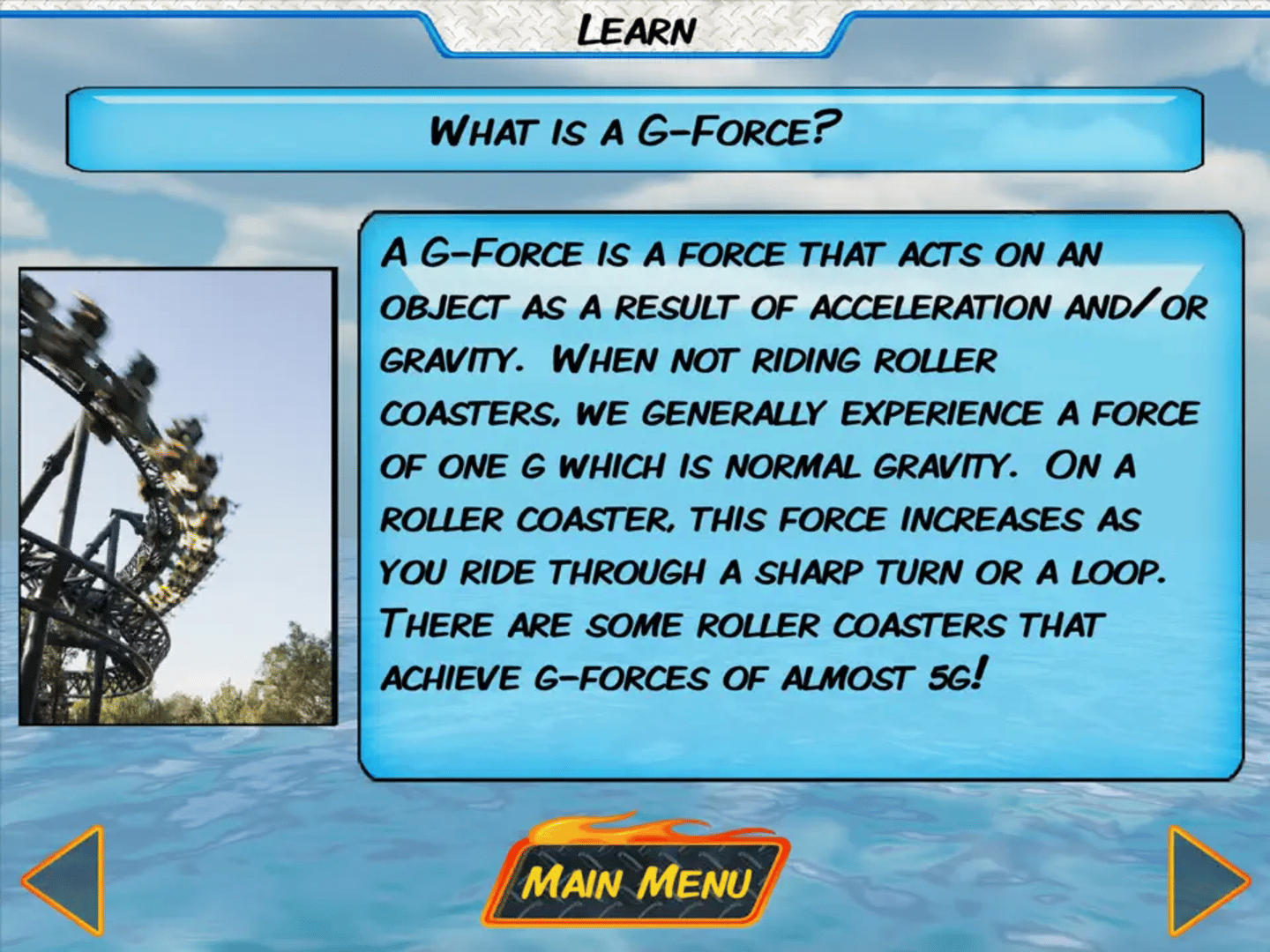 A unique game that allows you to build complex roller coasters in real time by simply tilting your screen. Create loops, corkscrews, barrel rolls, jumps and more while earning 75+ different game objectives. Save your coaster creations and ride them again and again with your choice of 14 different vehicles.