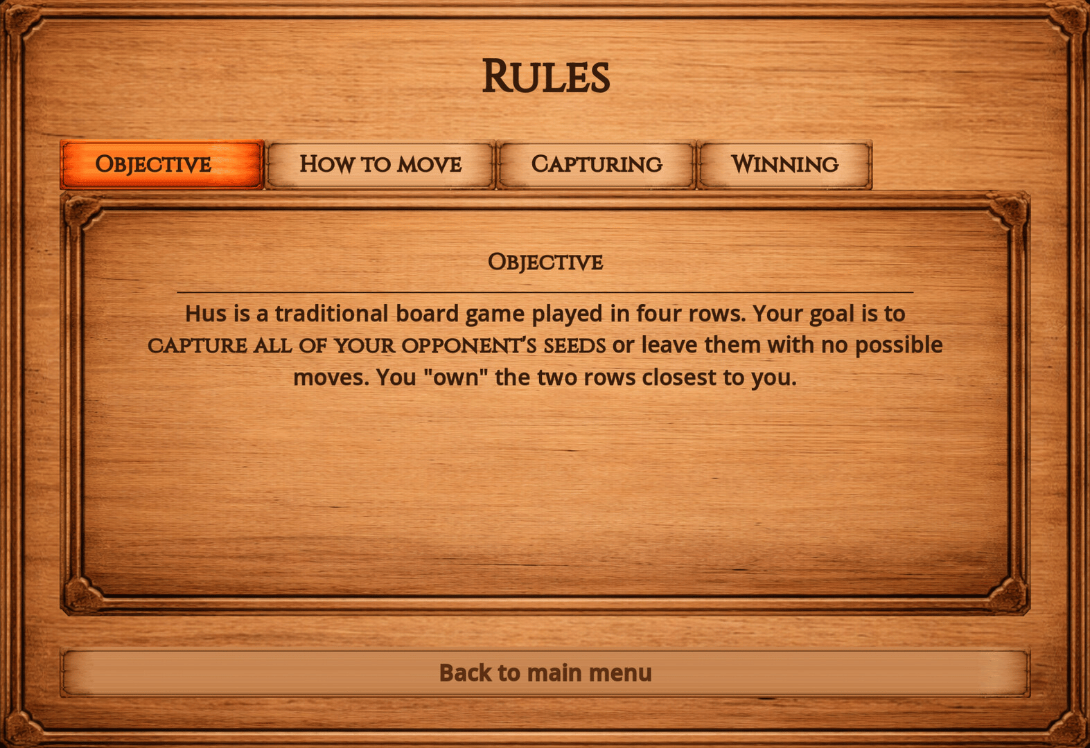 Hus: The 4-Row Mancala brings this traditional Mancala variant to the screen. Play locally with friends, challenge a bot, or compete online against others. With cross-platform support for Windows, Linux, and Android, you can play flexibly across multiple devices.