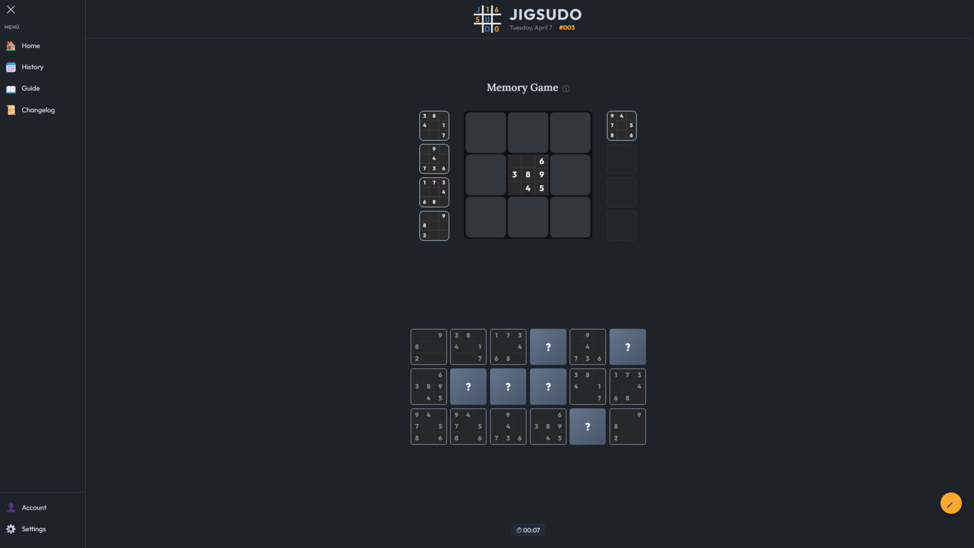 Jigsudo is a daily logic puzzle experience that challenges mental agility through a progressive sequence of six integrated mini-games. The journey begins with Memory, which unlocks the Jigsaw puzzle. Completing it opens the Sudoku board, leading to Peaks & Valleys. The challenge continues with Number Search and culminates in the grand finale: The Code, the ultimate step to winning the daily challenge. Featuring a fresh global puzzle every day at 06:00 UTC, Jigsudo allows players to compete in global rankings, track streaks, and sharpen their cognitive speed in a sleek, competitive environment.