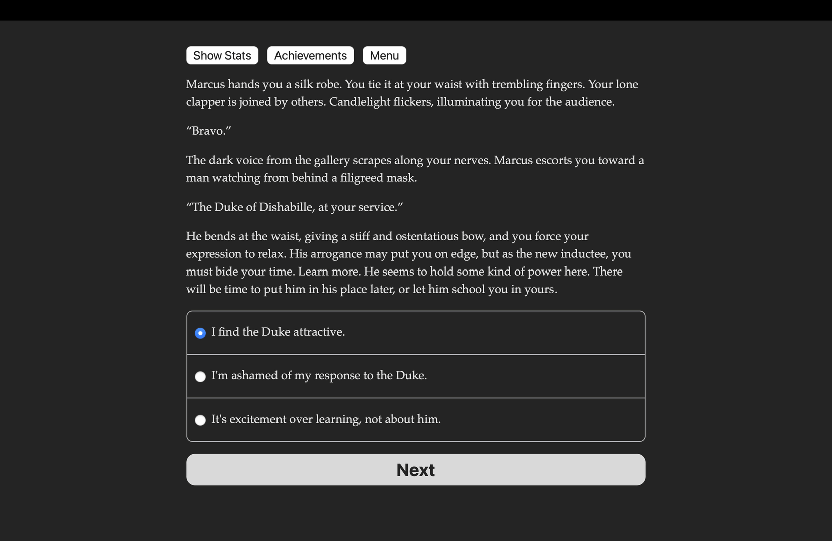 Infiltrate the orgiastic secret society beneath the modern-day Palace of Versailles! Will you expose their sex rituals or surrender to their pleasures? An interactive romance novel.