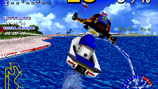 WaveRunner is an arcade, personal watercraft racing game. Playable with a hydraulic motion system Jet Ski that provides the realistic feel and movement of riding the waves on a 3-axis motion system. Players can turn the Jet Ski's handle bars, moderate the accelerator, and lean the Jet Ski body with the turns on one of the three available courses (Beginner, Intermediate and Expert) . With realistic 3-D action, several tropical courses and the ability to link multiple units this is a must-have Simulator for any arcade or serious collector!