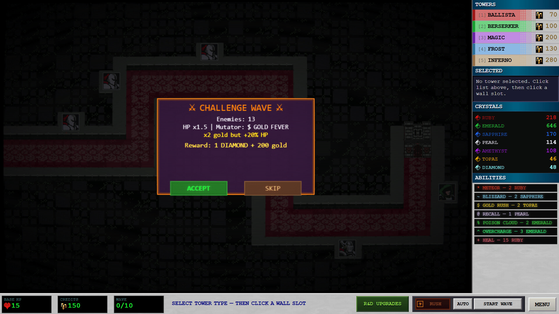 Towerix91 is an incremental tower defense inspired by PC games of the late 80s and early 90s. Collect crystals, unlock dozens of upgrades in the tech tree, place towers on walls, upgrade them and use abilities. Repel waves of enemies while steadily strengthening your defenses.