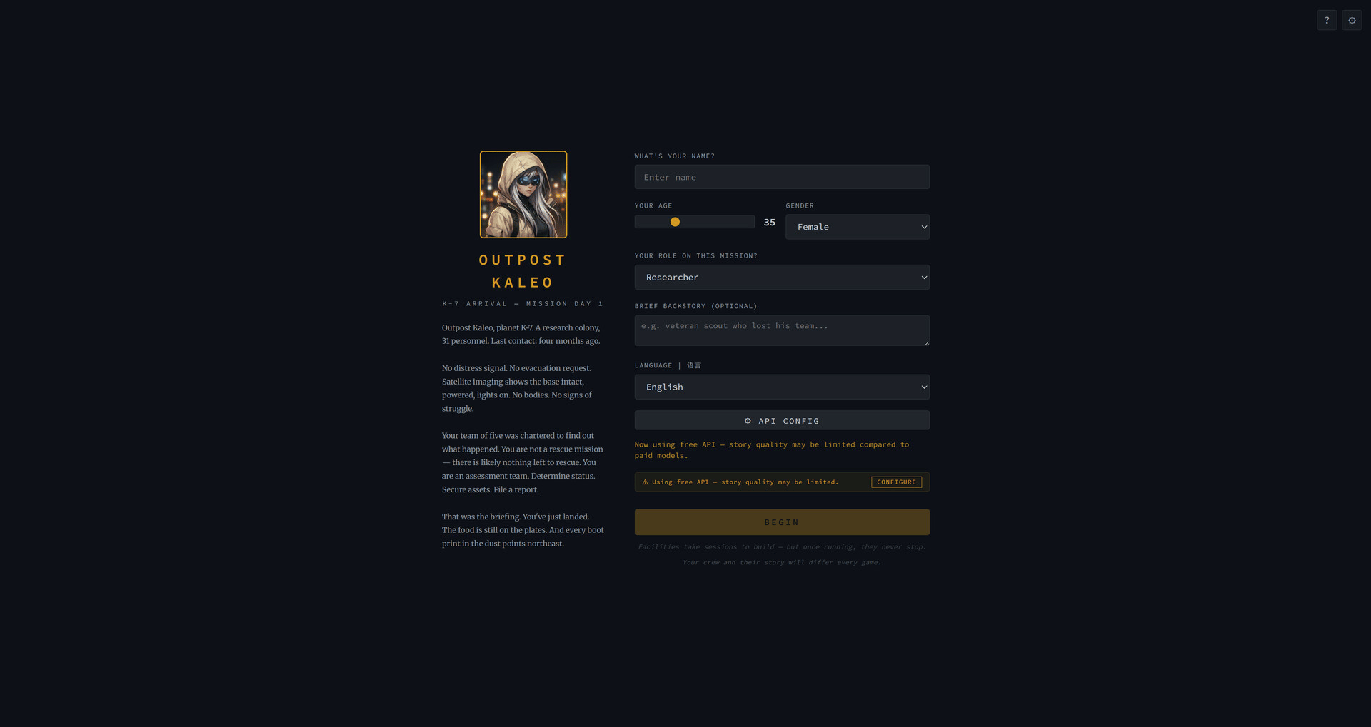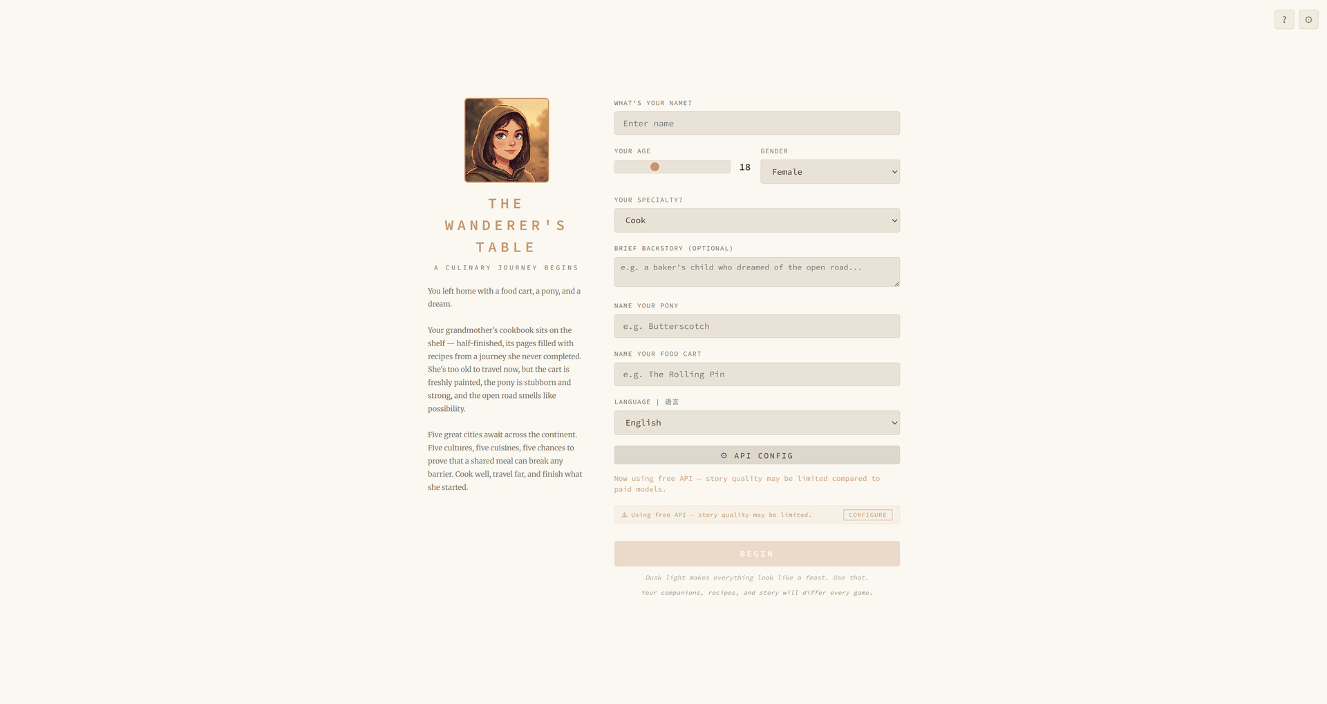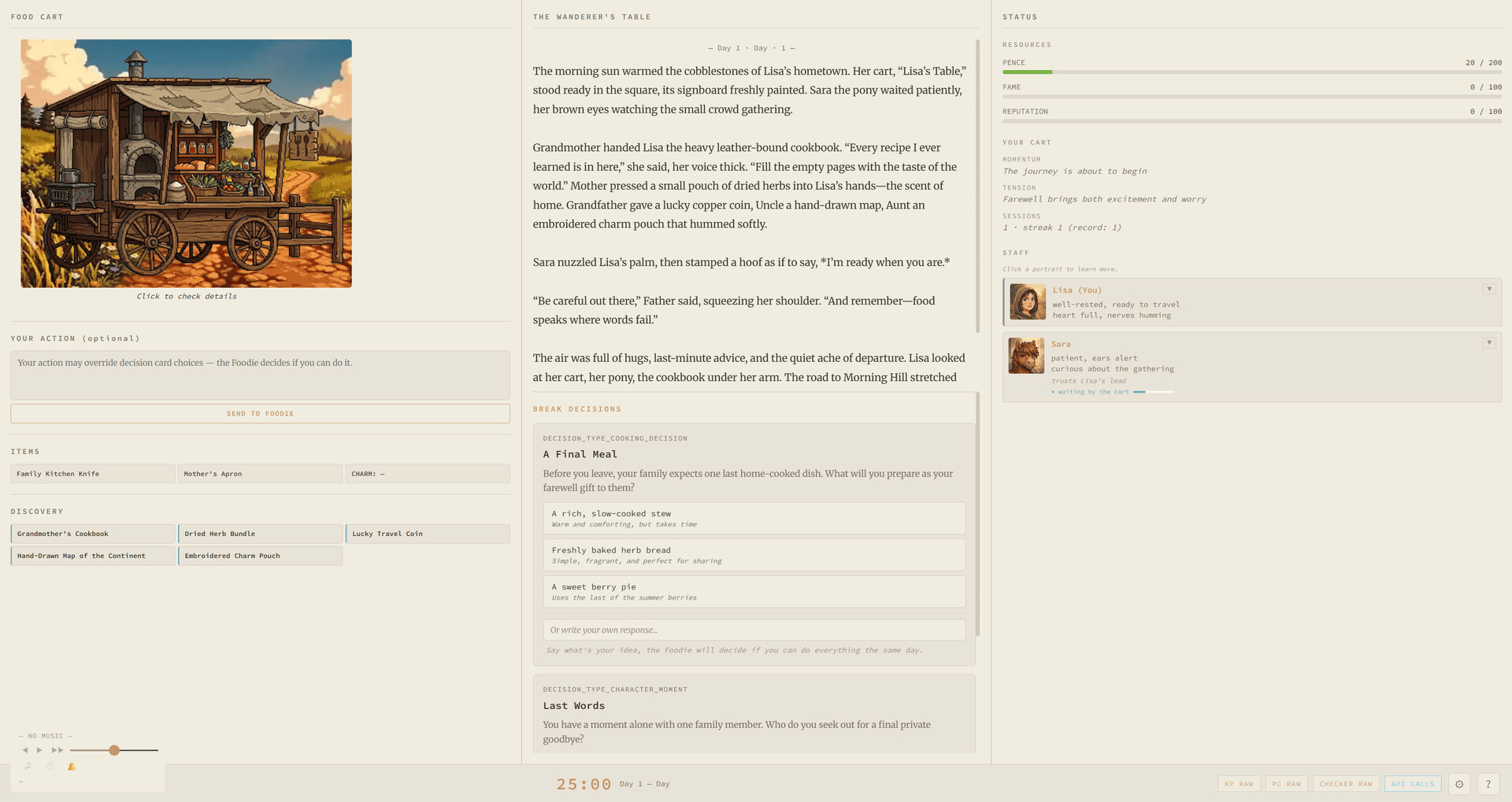 An AI-driven narrative RPG that grows alongside your focus sessions. Set a real-life task, start a 25-minute Pomodoro, and return to a fresh chapter written while you worked. Choose a fantasy cooking journey or a sci-fi survival mystery. Free AI built in.