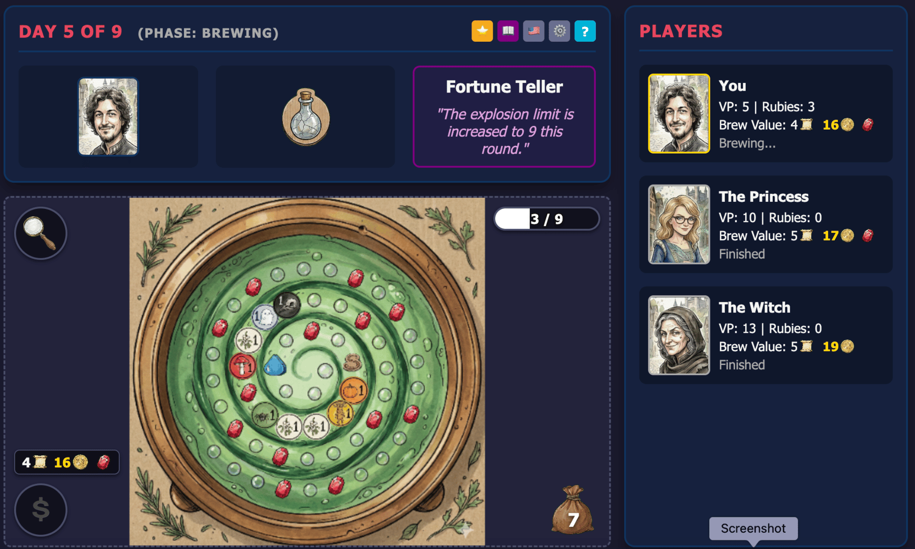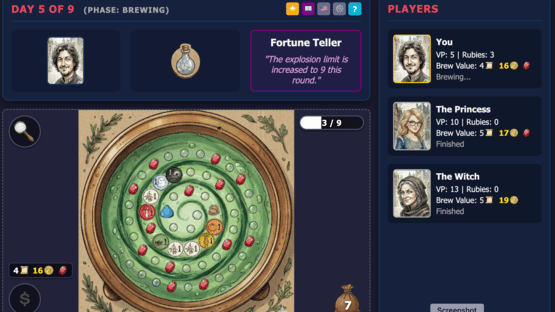 Free, fast-paced, push-your-luck potion making game. Brew & sell your potions, buy ingredients to make better potions. But if you add too many berries, your pot explodes!