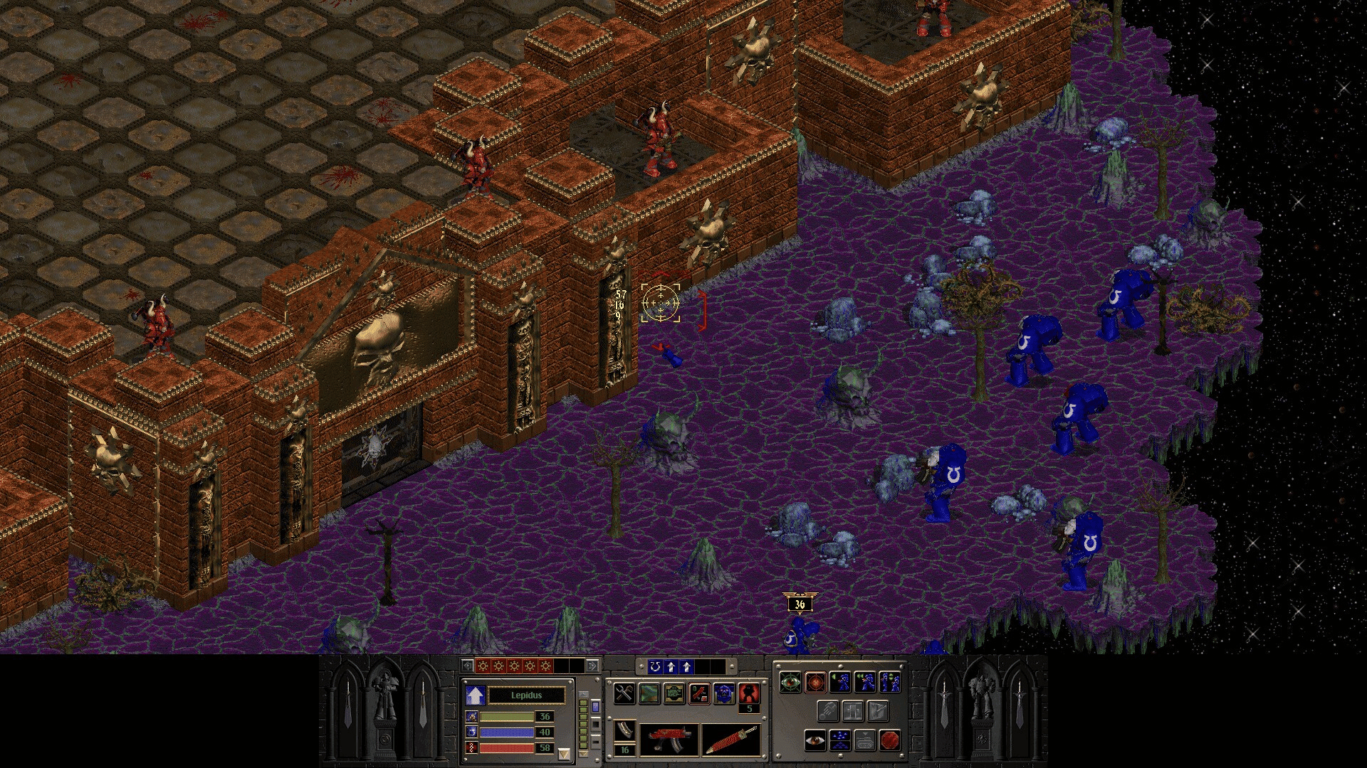 Command a squad of up to 20 Space Marines and battle the forces of Chaos led by Chaos Lord Zymran. Chaos Gate is a squad-level, turn-based tactical strategy game set in the grim Warhammer 40,000 world.
