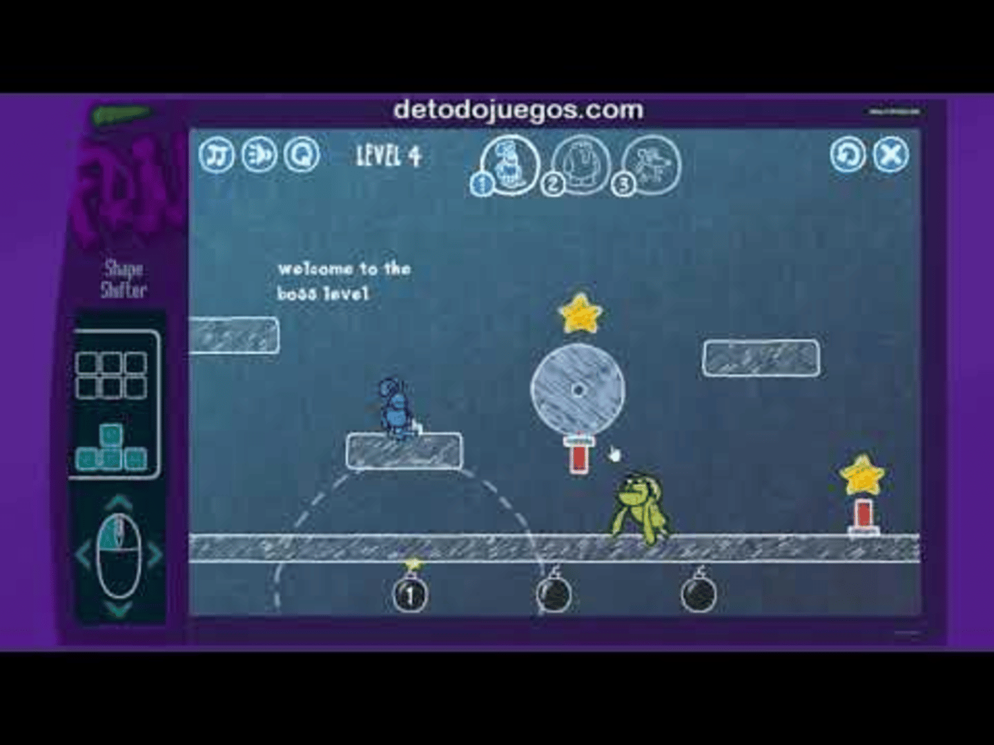 Shape Shifter is a platform/adventure game where you switch between different shapes or characters, each with their own abilities. The goal is to use these transformations to avoid dangers, solve challenges, and complete the levels, reaching the end of each stage.