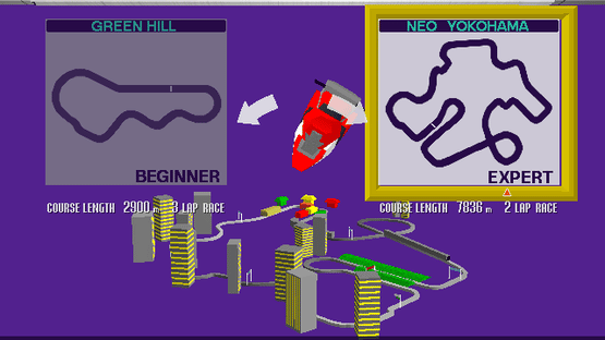 A motorbike racing game featuring 2 courses; Greenhill: A high-speed track along the coastline and Neo Yokohoma: A futuristic technical course in an urban area at night.