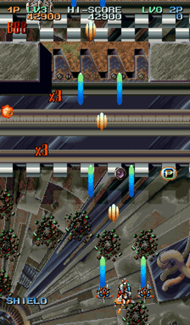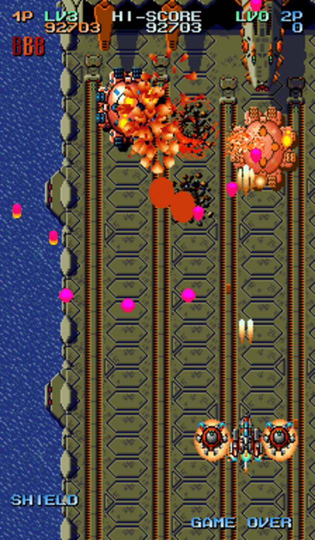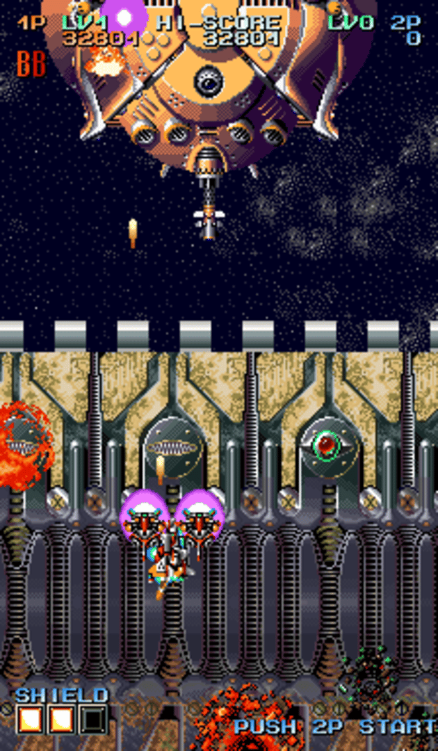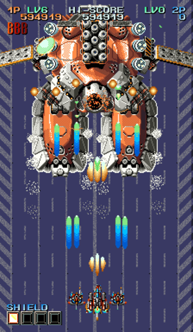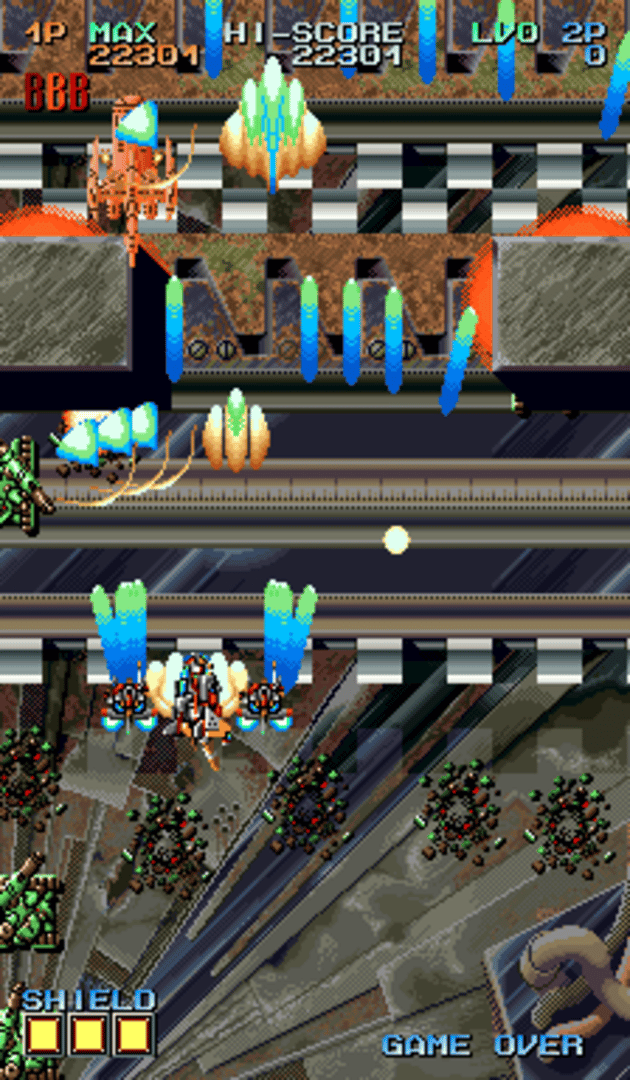 Gunnail is a vertical space shoot'em up. It's a very standard shooter - very fast action, and many enemies to kill. Player controls a space ship, and flies straight forward. He must destroy enemies - the spacecraft has a gun that can be improved by power-ups and special weapons. Player can obtain helpers ("option" from Gradius). At the end of each level a boss awaits - every boss is heavily armed and difficult to destroy.