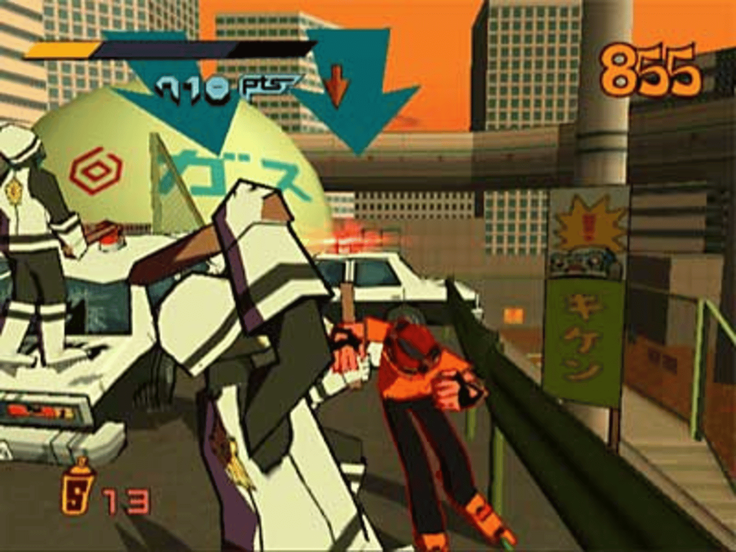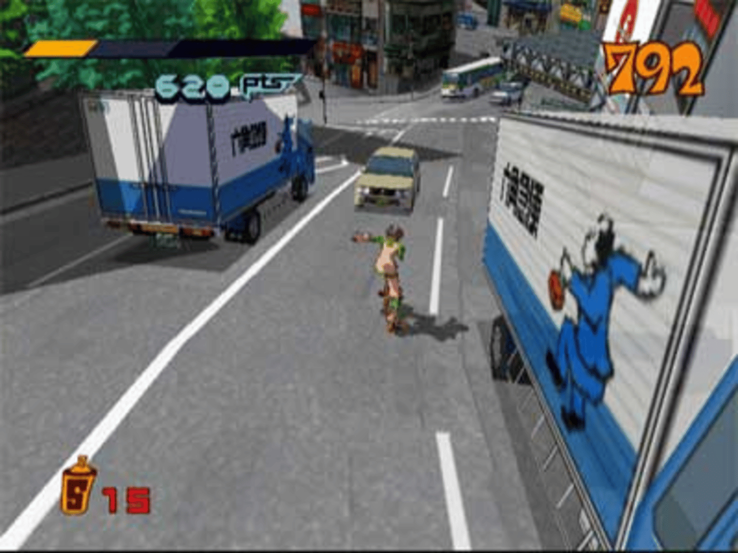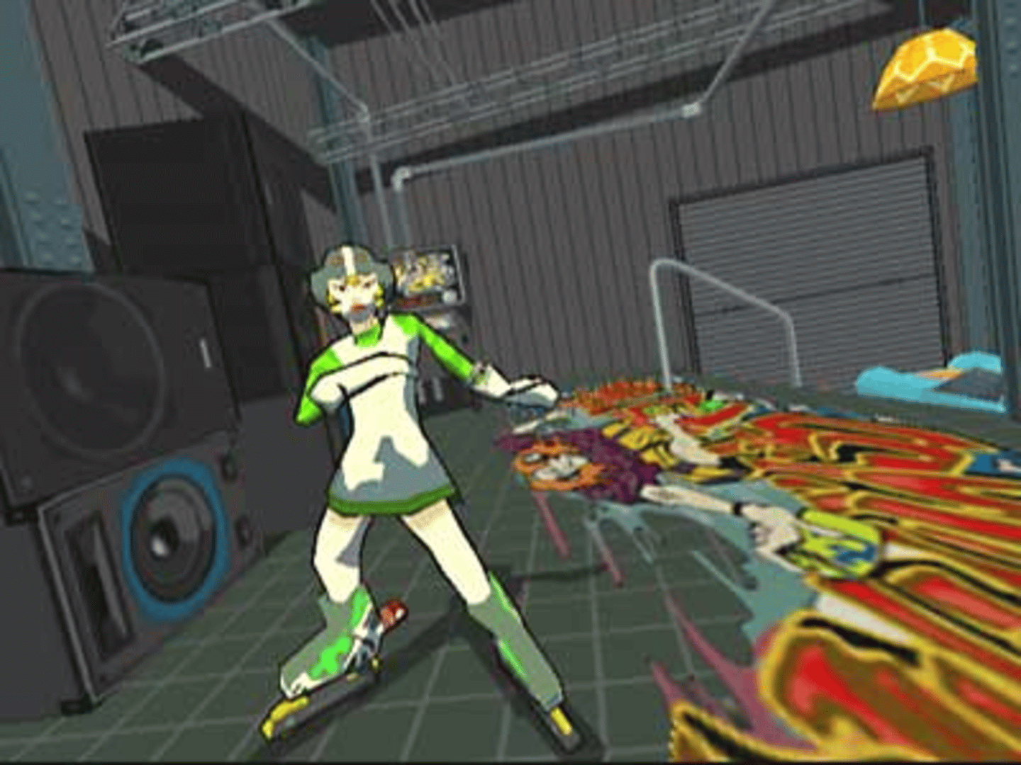The government is attempting to silence the kids of Tokyo, but with their Overdrive Magnetic-Motor Skating Shoes, the cops will have to catch 'em first. The Jet Grind Radio program keeps the kids unified and inspired to fight for their rights of expression, which includes graffiti art. Grab your spray cans and design your own piece on one of the immense walls in the 3D, interactive city. You might be forced to protect your territory from adversaries that want to take over your neighborhood. Join up with like-minded hip individuals that will help you keep your area the way you want it. The cops will be after you too, so you'll have to be quick. The 10 cartoon-style characters are pumped up with polygons so they come alive in 3D on Dreamcast. Uniqueness is key to these kids and each character stands apart with exclusive abilities and style. They like to show off too, and with 18 missions, there's plenty of time to impress. It's fast, it's fun, and it's definitely funky.