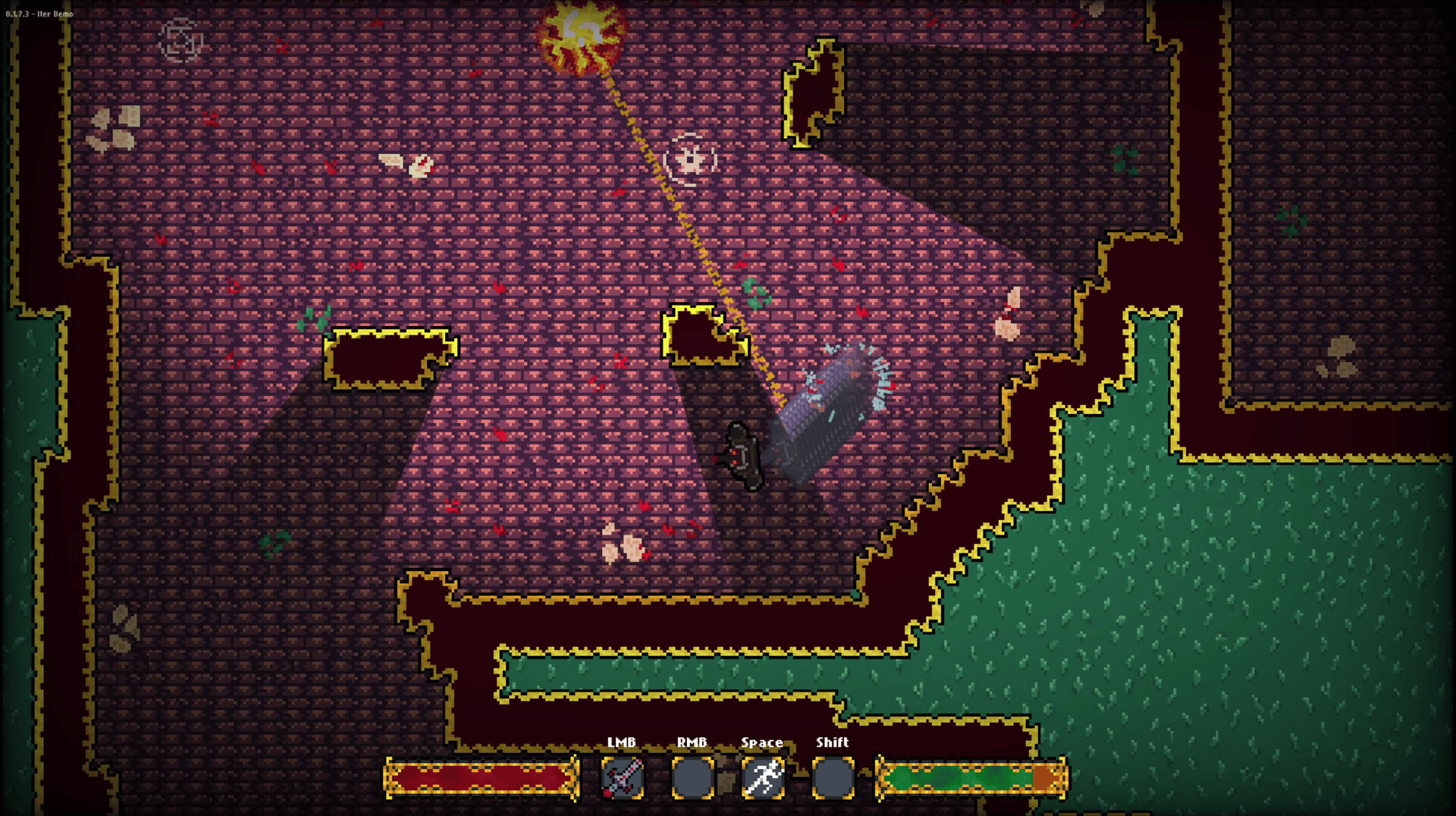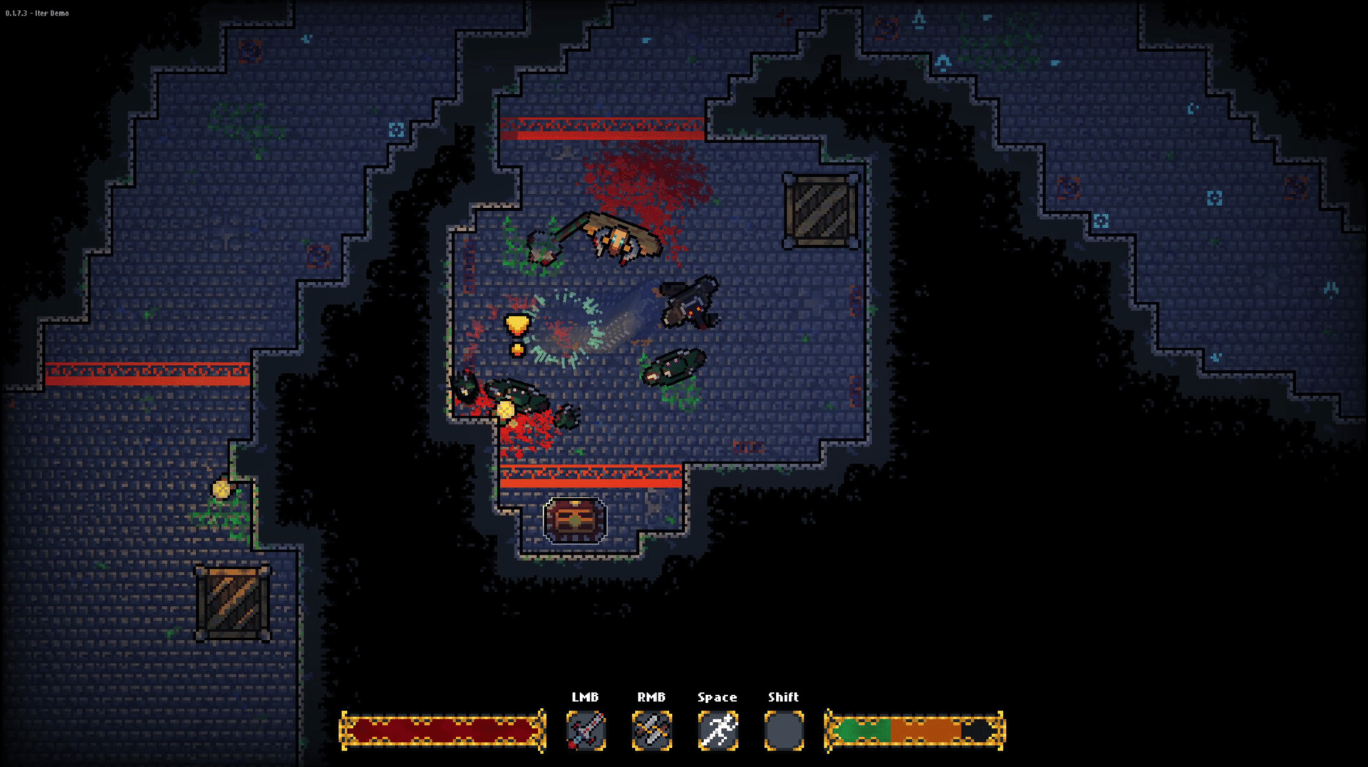 Iter is a real-time souls-inspired action-adventure game. Traverse dungeons, fight your way through a variety of enemies, and customize your loadout with weapons and abilities that you will find throughout the game.