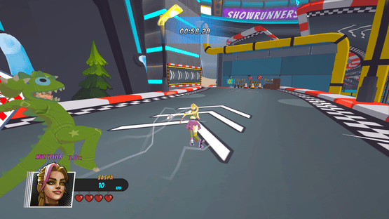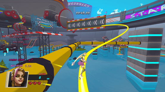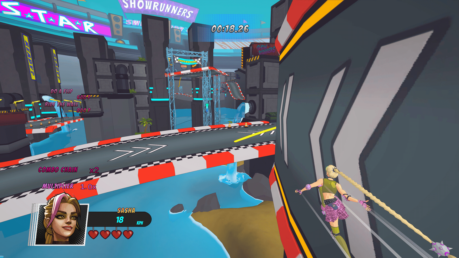 A single player, fast paced, speed running platformer focused on building up and maintaining high speeds, performing tricks and mastering the use of movement to achieve the fastest time and greatest score. Find and unlock new movement options to help you escape the gameshow you are trapped in.