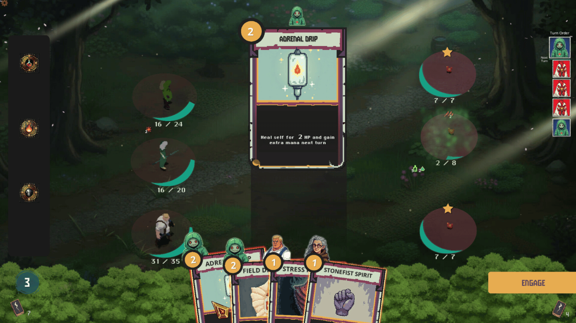 Forge insane combos by fusing powers & enhancers in this team-based roguelike deckbuilder. 15 unique characters with 150+ equipment combinations!