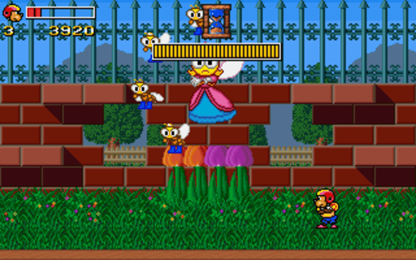 Super Trio is a Korean-made platformer. Despite its initially sinister plot involving an evil vampire lord being resurrected in his ominous castle, the actual game takes place in colorful, modern-day-themed environments, featuring microscopic protagonists traversing everyday household objects arranged as platform structures.