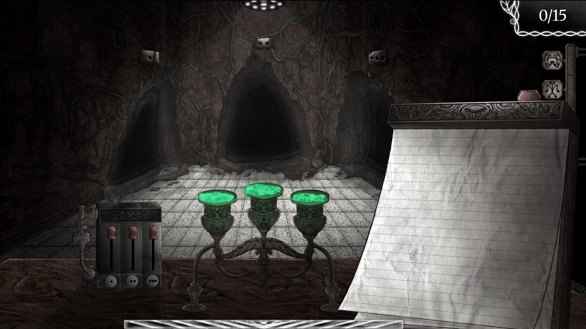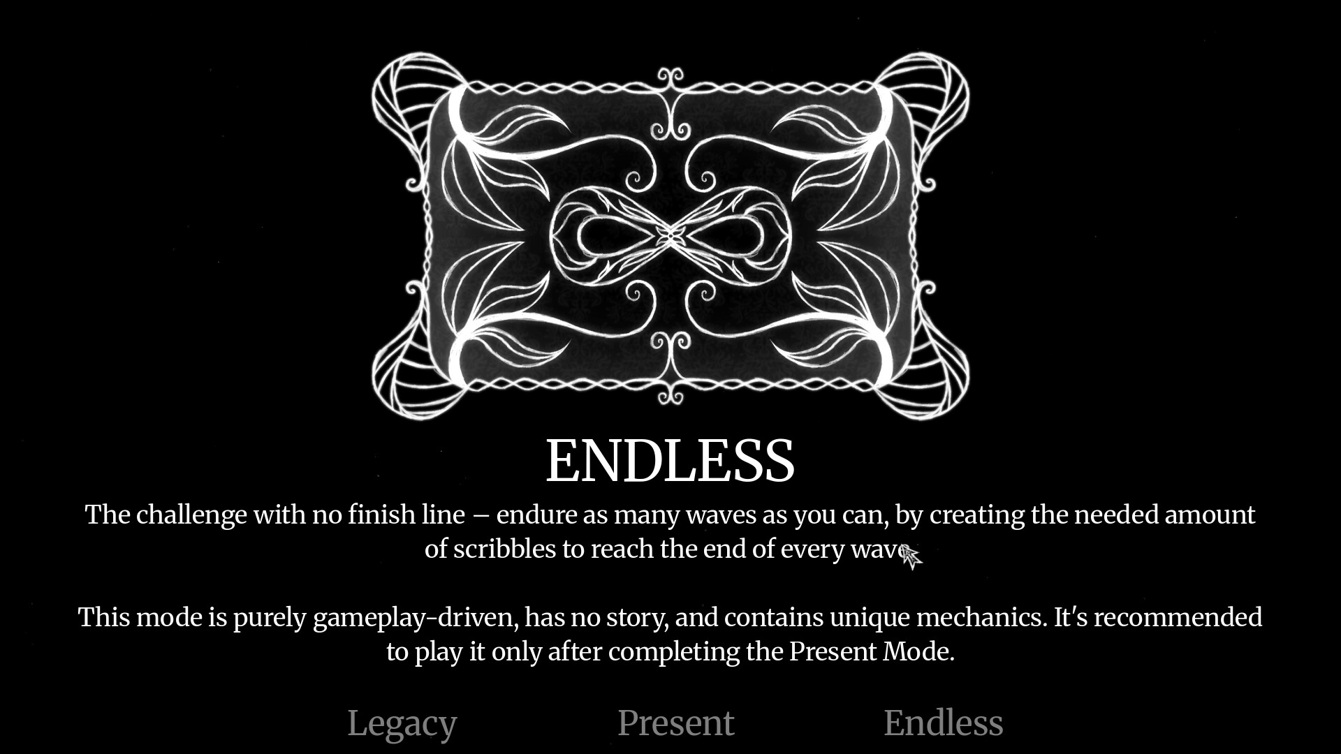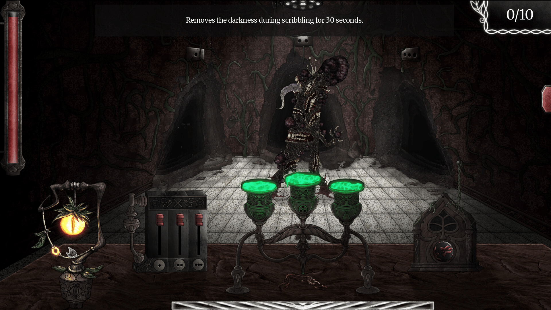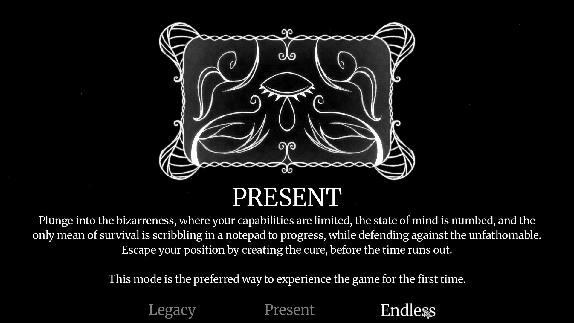 You open your eyes in a surreal space, paralysed. The only thing you can do is to scarcely move your right arm, and scribble. Scribble in a notepad before you to move forward. Towards a goal you must reach, despite something horrific trying to reach you. Create the cure. You don't have much time.