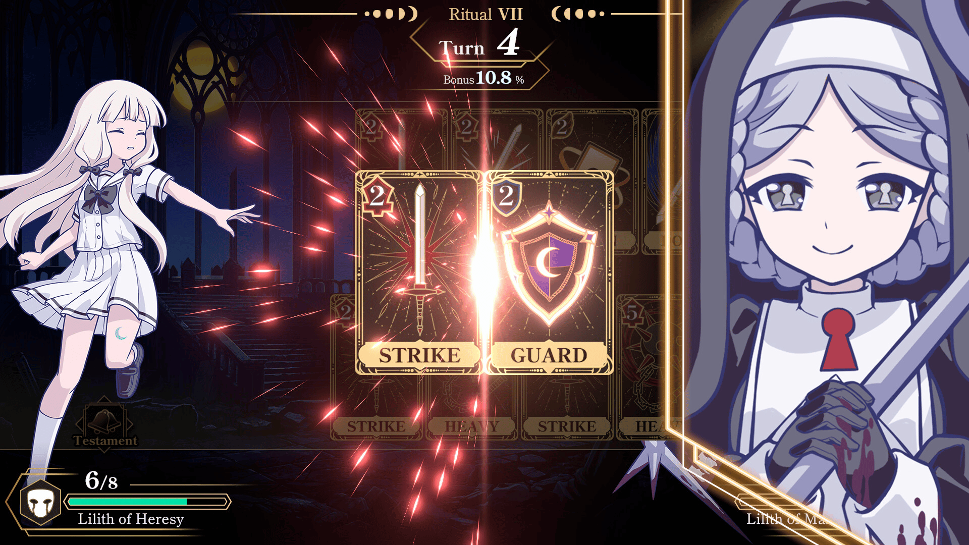 That night, thirteen witches devour each other. "Lunar Pulse" is a single-player roguelite card game. Under eternal moonlight, a ritual for life and death unfolds. Play simultaneously with hands revealed. One move invites instant death—soulslike tension in every card battle.