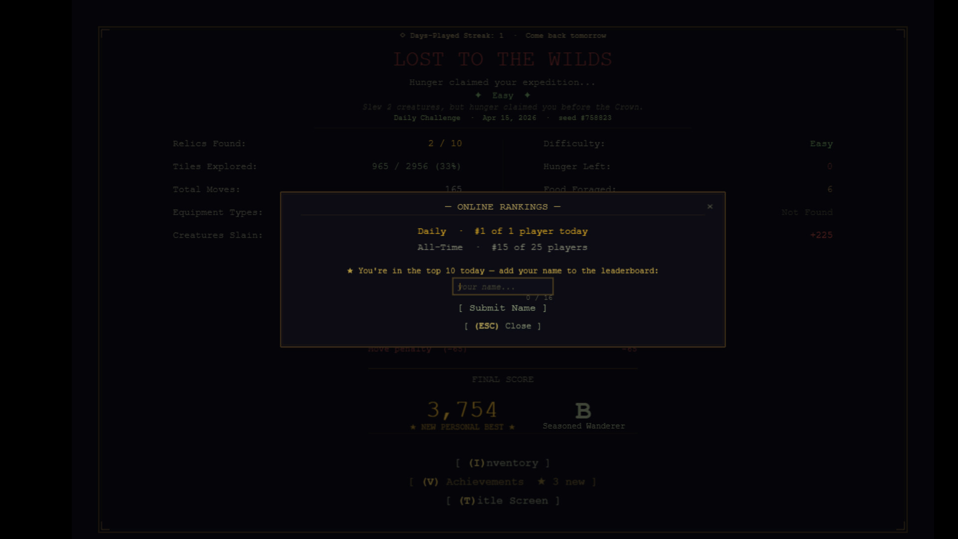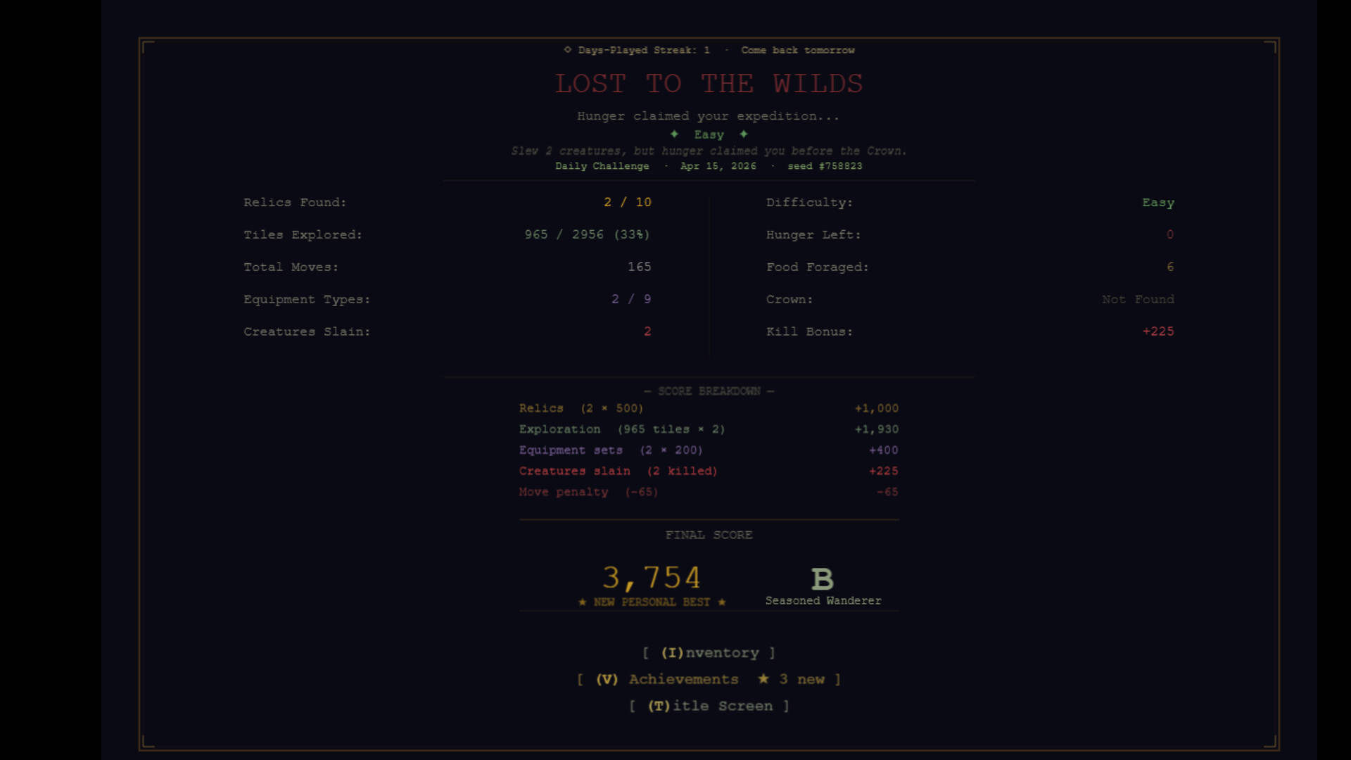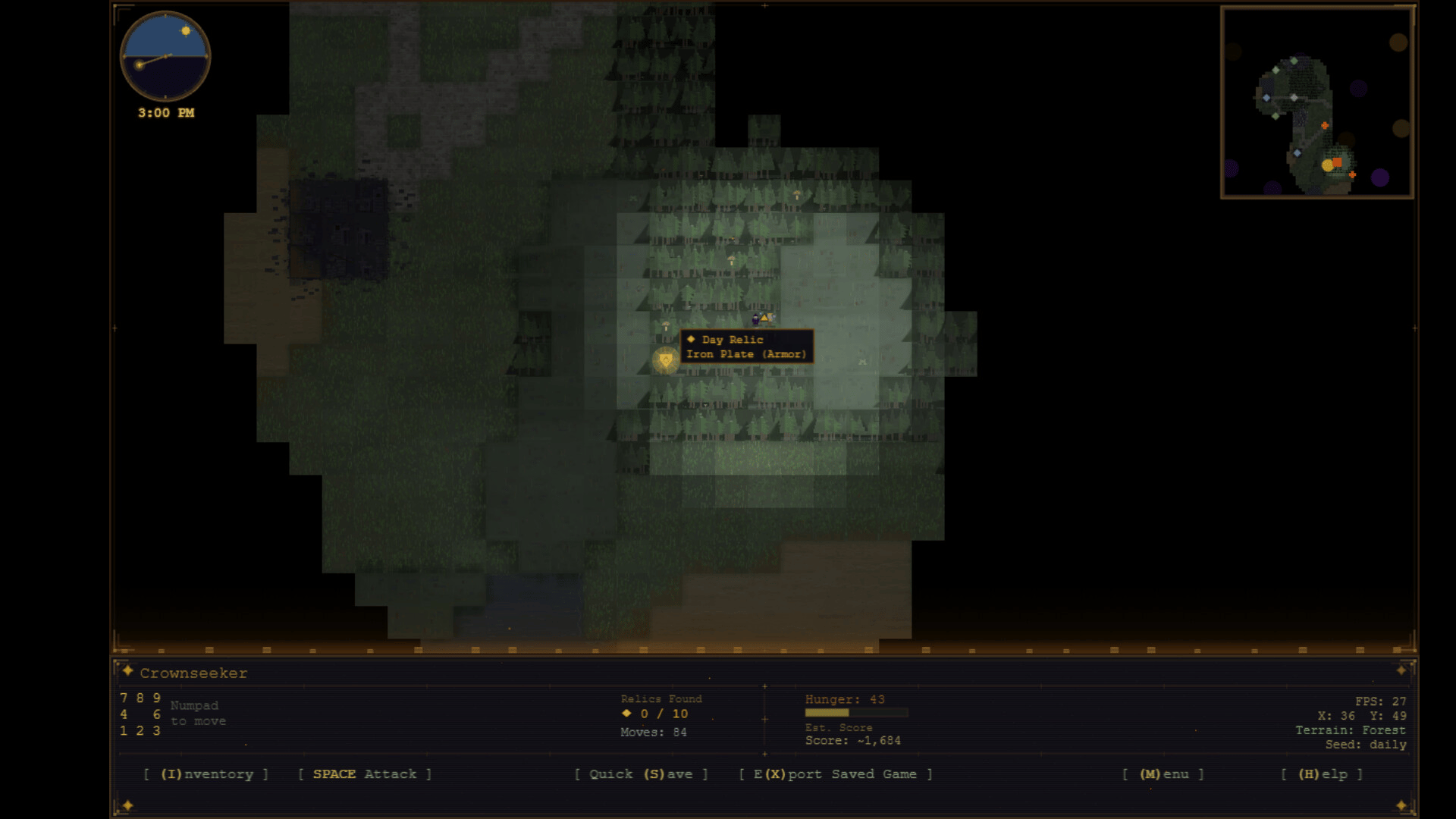 Hunt relics by day and night across a fog-shrouded world. Manage hunger. Gear up. Outlast or defeat what's hunting you. Collect all the relics — and the Crown appears. If you survive long enough to claim it.