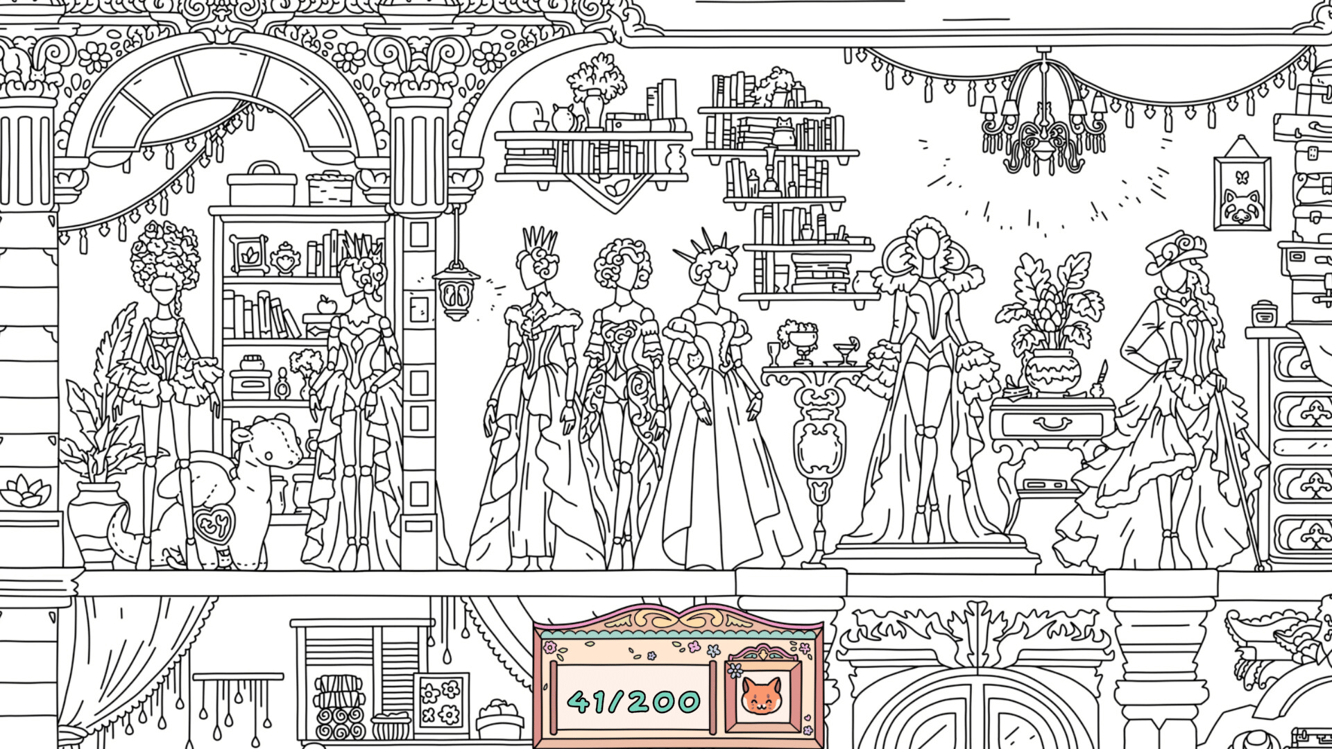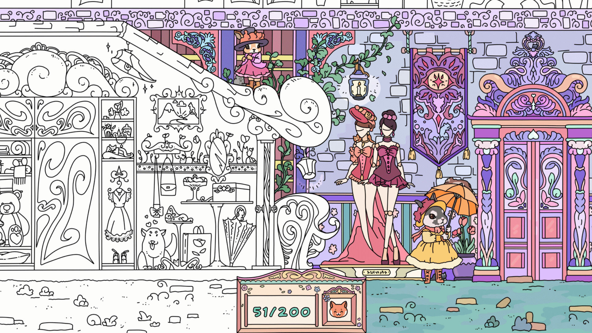 Explore the wonderful world of dolls, discover cute cats, and color the black-and-white scenes with bright colors.